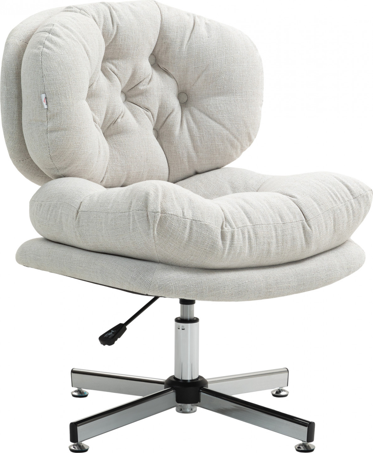 Vyzkoušejte pohodlí kancelářské židle s 18,5 cm silnou pěnovou výplní a 15 cm silným opěrákem, potaženým prodyšnou látkou v lněném vzhledu. Prohnuté opěradlo s prošíváním knoflíků dodává židli eleganci a sofistikovanost. Výšku lze snadno nastavit díky bezpečné plynové tlakové pružině třídy 3. Tato otočná židle je ideální ke každému počítačovému stolu nebo pracovnímu místu a je nezbytným doplňkem vašeho pracoviště.