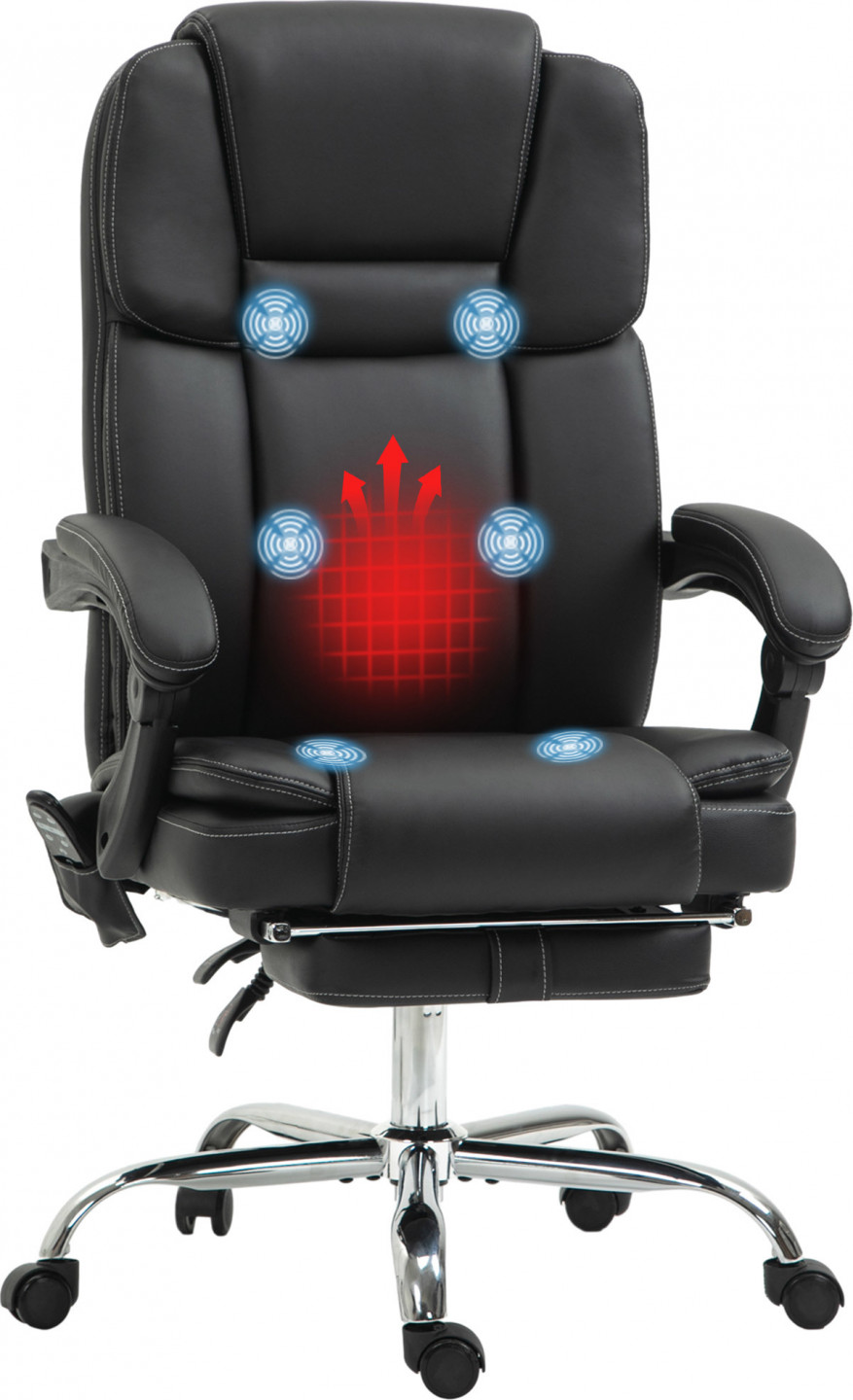 - Šest vibračních masážních bodů domácího kancelářského křesla se třemi režimy, třemi úrovněmi intenzity, časovačem a třemi nastaveními bederní teploty.