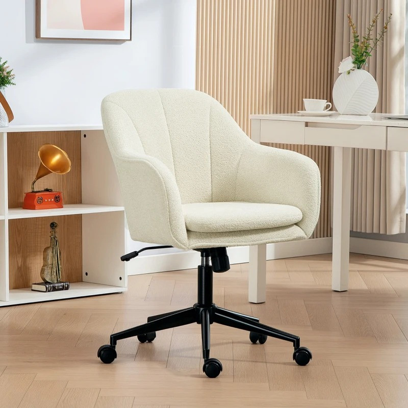 Dlouhé pracovní dny na tvrdé a nepohodlné židli mohou být únavné a bolestivé. Kancelářská židle to mění: Nechte se zabořit do sametově hebké látky a vyzkoušejte, jak ergonomické opěradlo podpoří vaše držení těla. Díky nastavitelné výšce a funkci houpání nabízí tato otočná židle pohodlí na míru, které podpoří vaši koncentraci a pohodlí po celý den.