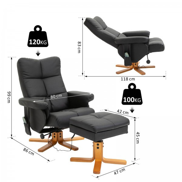 - Maximálna nosnosť: 120 kg (kreslo), 100 kg (podnožka)