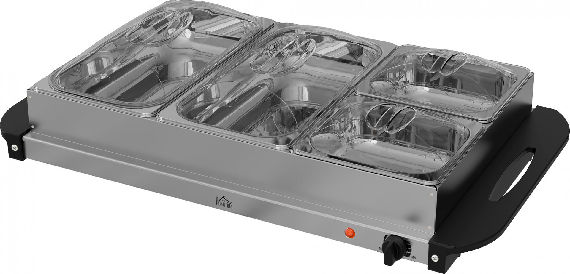 - 2x 1l miska a 2x 2,4l miska: Bufetový ohřívač má čtyři sekce pro různé pokrmy