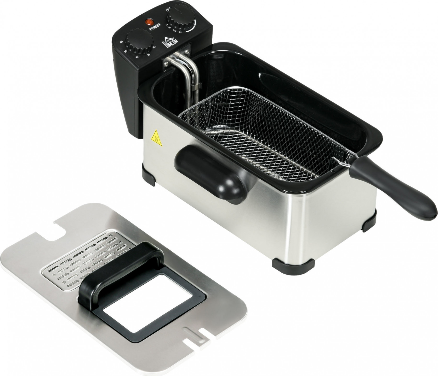 - Víko z čirého tvrzeného skla zabraňující vystříknutí horkého oleje