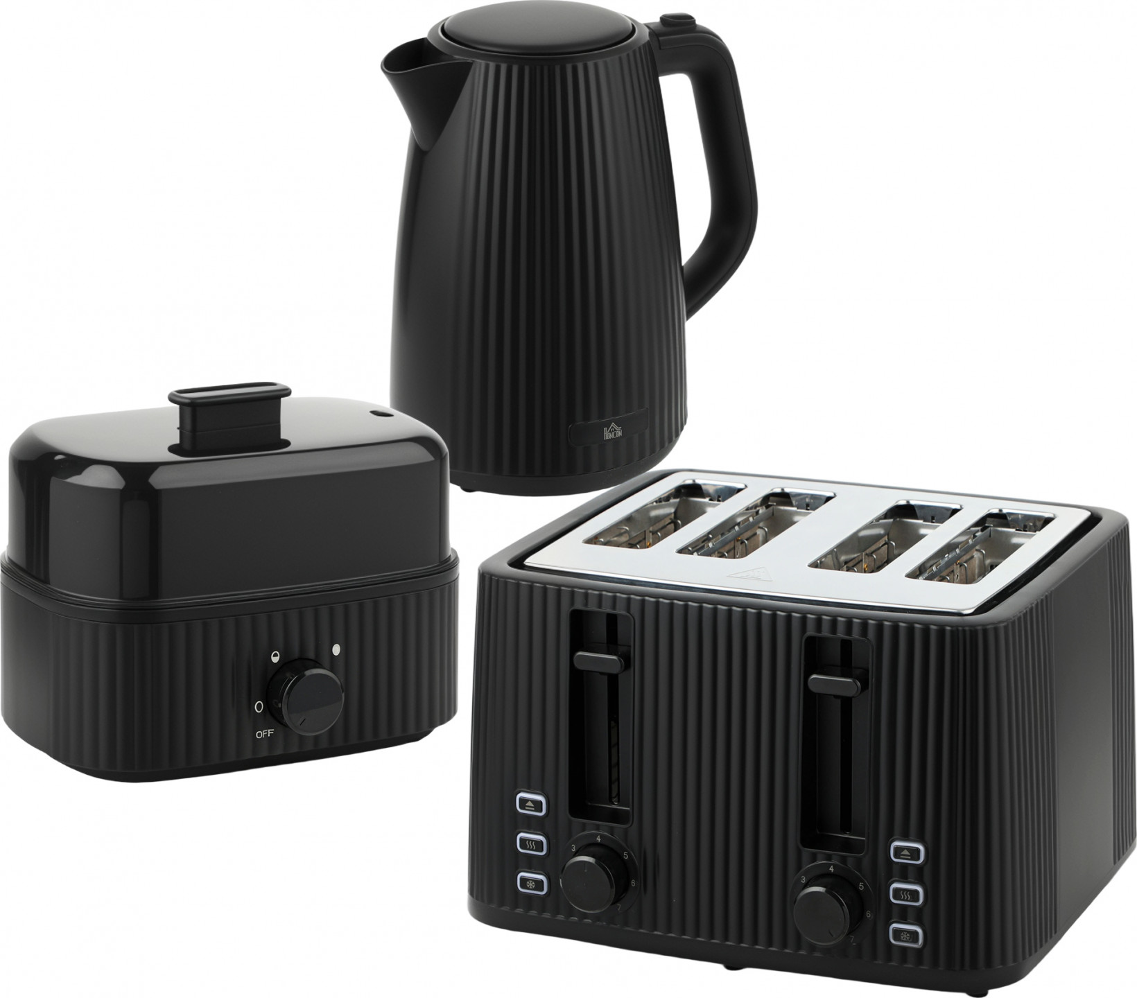 - Kompletní snídaňová sada zjednodušuje rána díky rychlovarné konvici, toustovači a vařiči vajec.