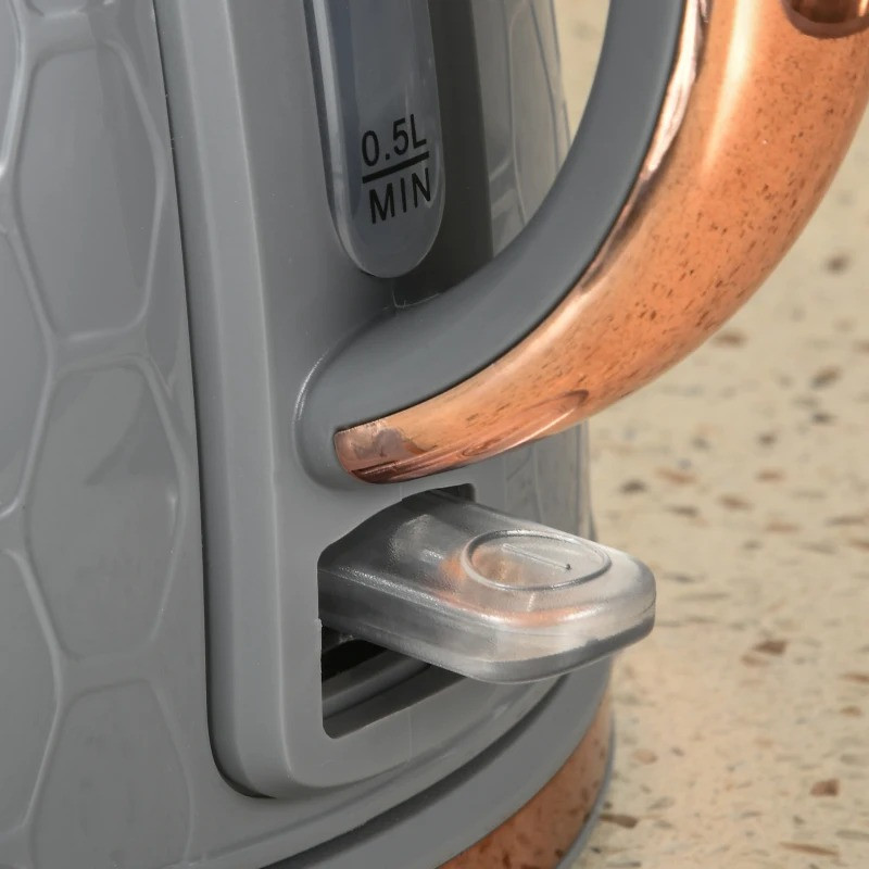Tato sada konvice a topinkovače kombinuje tlakový hrnec o objemu 1,7 litru a topinkovač se čtyřmi plátky ve stylovém voštinovém designu. Topinkovač nabízí sedm stupňů propečení toastů a rychlovarná konvice připraví dostatek horké vody až pro šest šálků čaje, což je ideální pro společenské akce. S touto praktickou sadou topinkovače a rychlovarné konvice si můžete zpříjemnit snídani i příjemnou přestávku na kávu.