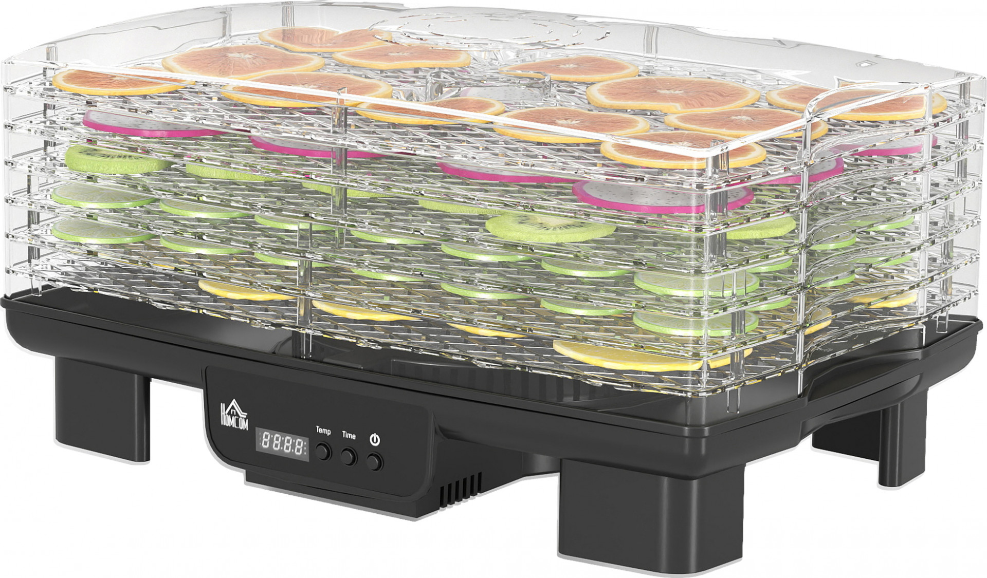 Objevte umění sušení potravin s touto sušičkou. S nastavitelnými policemi je ideální pro vše od jemného hovězího sušeného masa až po velké houby. Účinná cirkulace horkého vzduchu v sušičce zajišťuje optimální výsledky sušení, zatímco průhledný kryt vám umožní neustále sledovat vaše pochoutky. Díky nastavitelné teplotě 40-70 ℃ můžete bez námahy vytvářet zdravé svačinky, jako je sušené ovoce, zelenina nebo dokonce pamlsky pro vaše domácí mazlíčky.