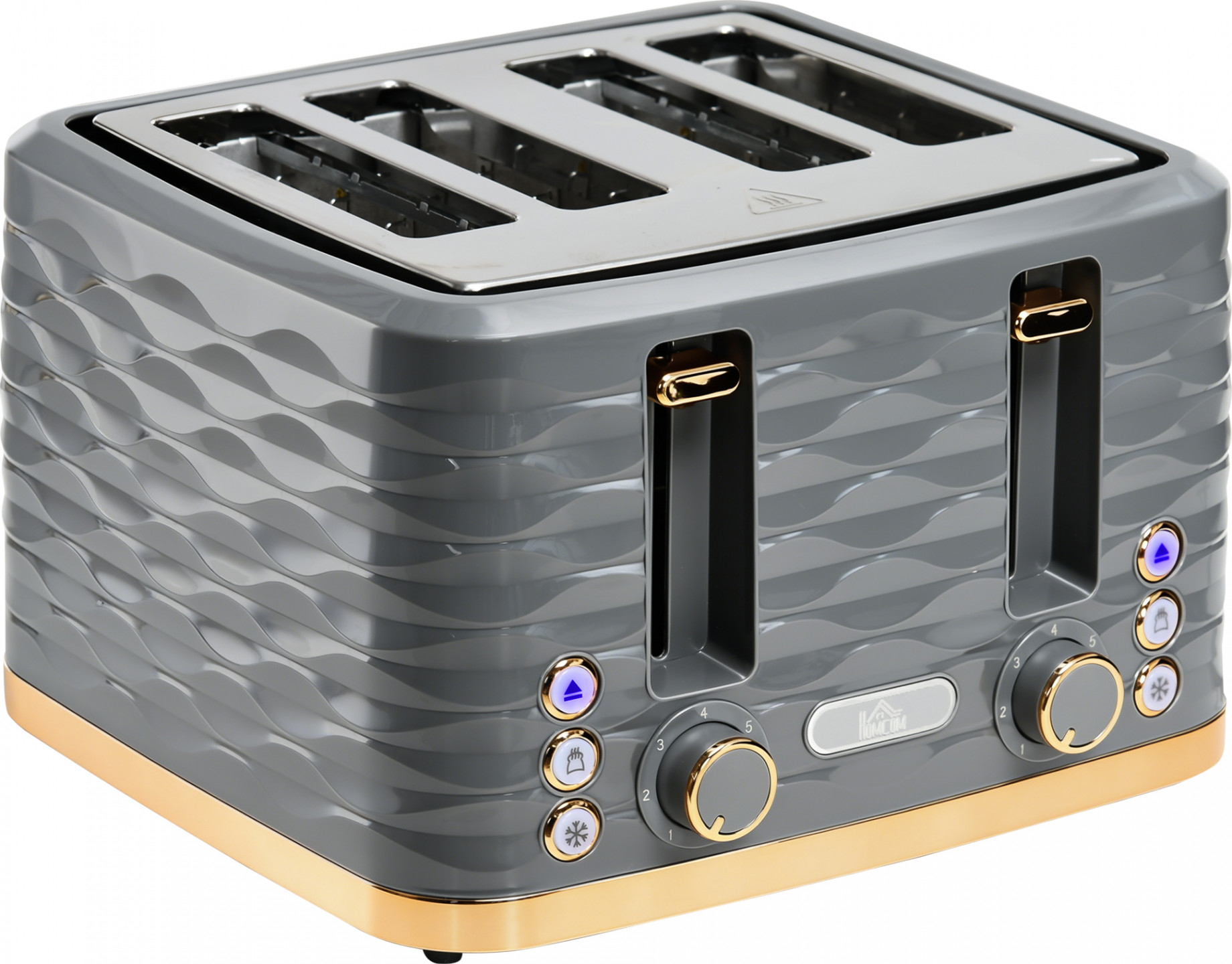 Začněte svůj den s lahodnými toasty a v moderním stylu - díky tomuto topinkovači na čtyři plátky. Díky designu ve tvaru vlny, sedmi stupňům propečení, automatickému centrování a vypínání si můžete vychutnat dokonalé toasty. Vyjímatelný tácek na drobky usnadňuje čištění.