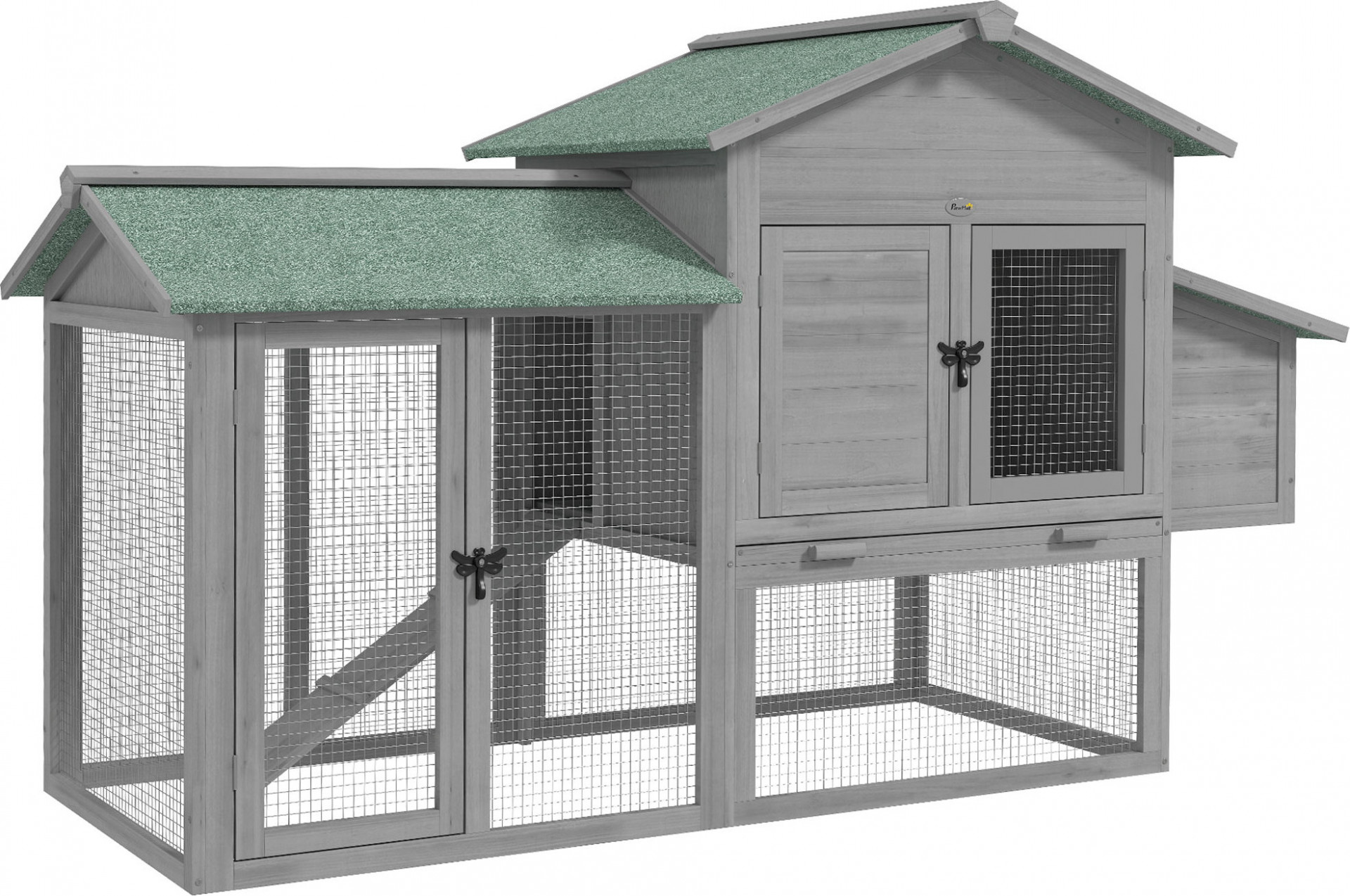 Dřevěný kurník s volným výběhem 168 x 75 x 103 cm | šedý