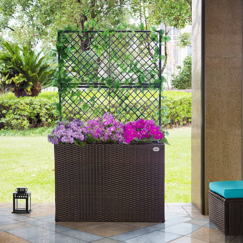 Polyratanový květináč s mřížkou |hnědý