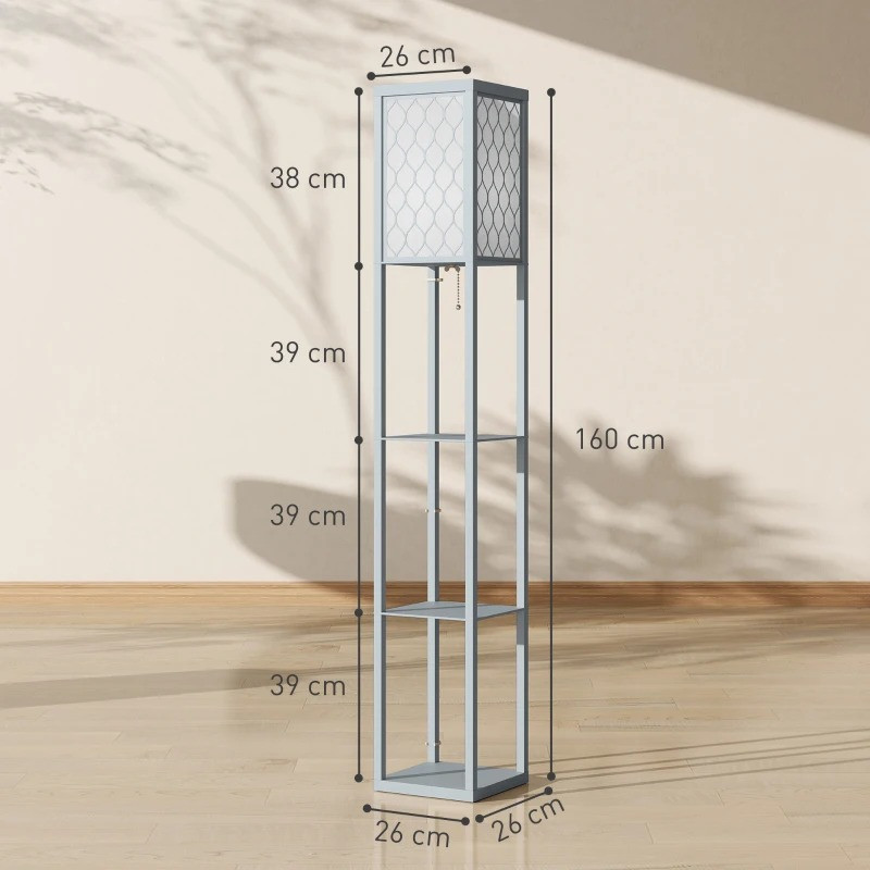 Stmívatelná stojací lampa s poličkou | světle šedá