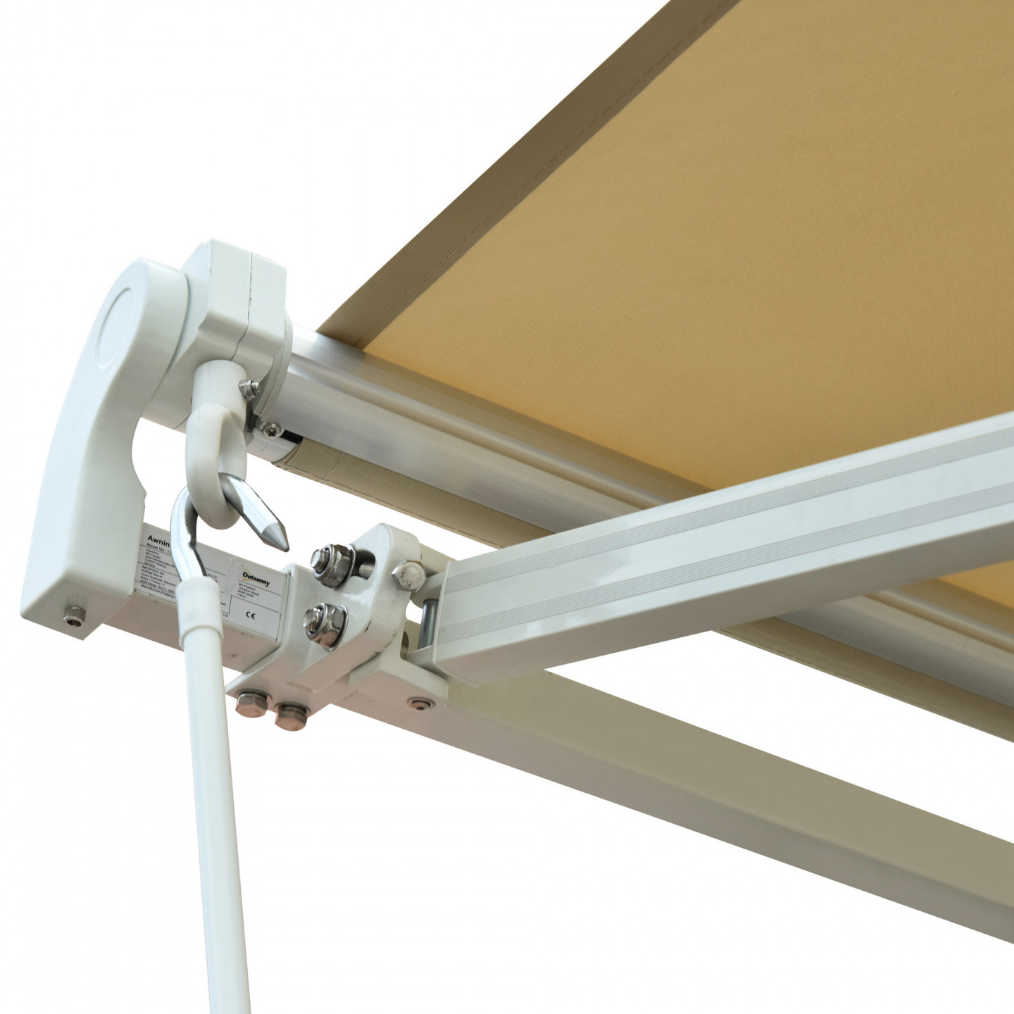 Vysokokvalitná okenná markíza vhodná prebalkón a terasa. Je vyrobený z odolného polyesteru s vodoodpudivým polyuretánovým náteroma je vybavený dvomi kovovými držiakmi a ručnou kľukou pre jednoduché ovládanie.