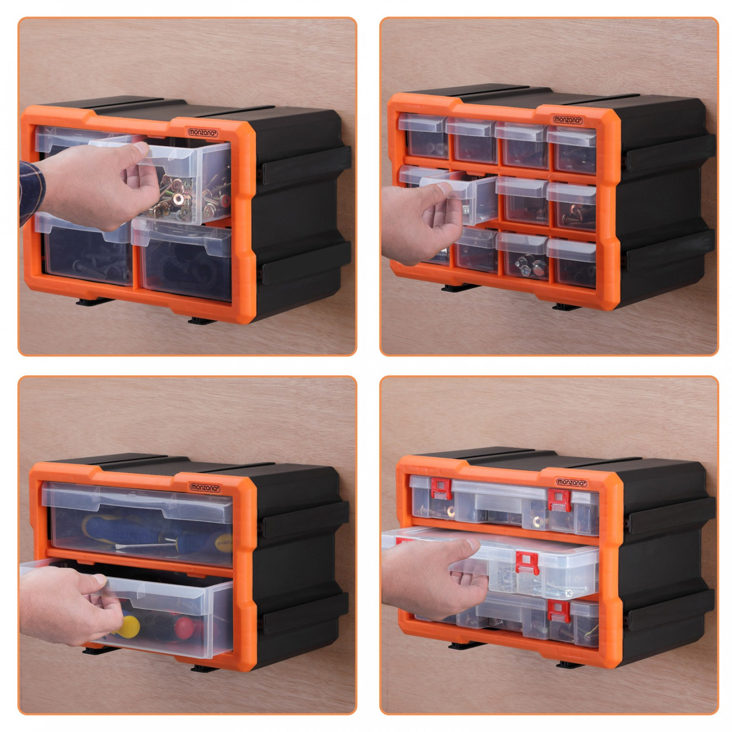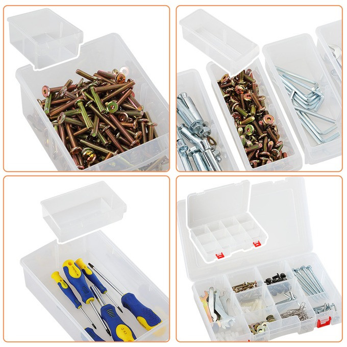 Praktický box na drobné díly s 72 přihrádkami je ideální pro organizaci šroubů, matiček, hřebíků nebo drobného elektronického příslušenství. Přehledný systém přihrádek zajišťuje rychlé nalezení potřebného dílu.