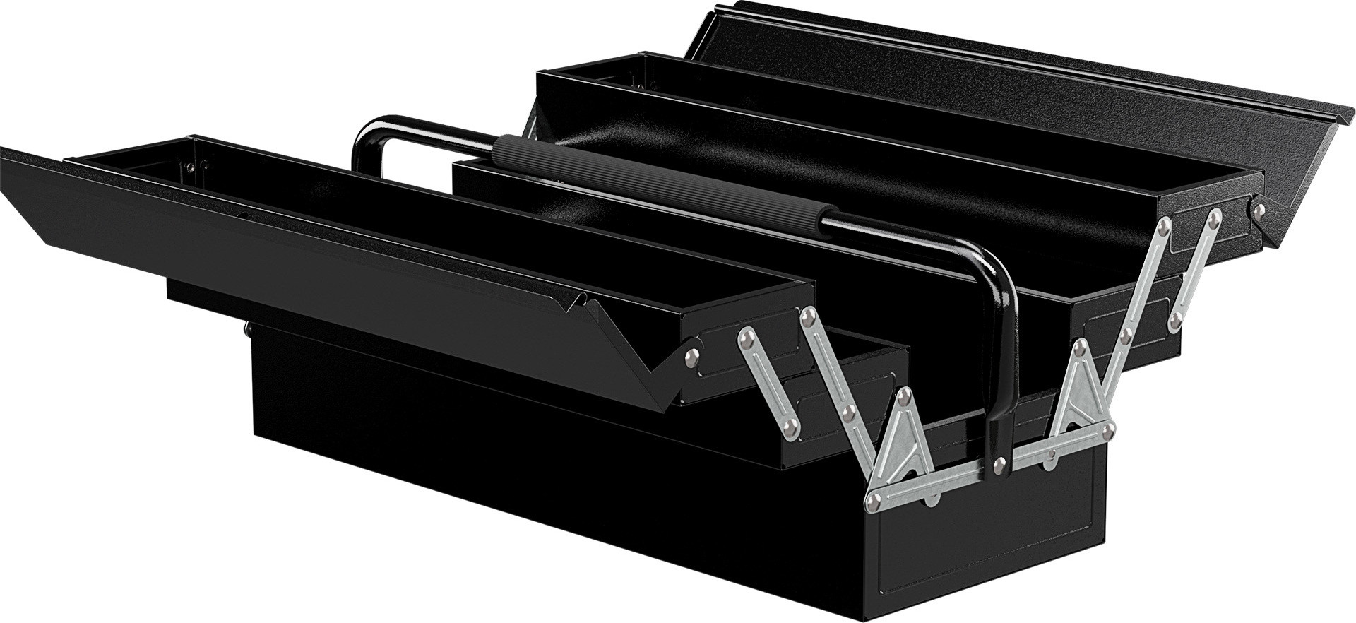 S tímto boxem na nářadí budete mít nářadí vždy po ruce. Tři úrovně a pět přihrádek nabízí dostatek prostoru pro nářadí a příslušenství. Box na nářadí je vyroben z vysoce kvalitní oceli, která nerezaví a je odolná proti poškrábání. Box na nářadí se snadno přenáší díky rukojeti na přenášení. Ať už se jedná o dílnu, garáž nebo sklad.