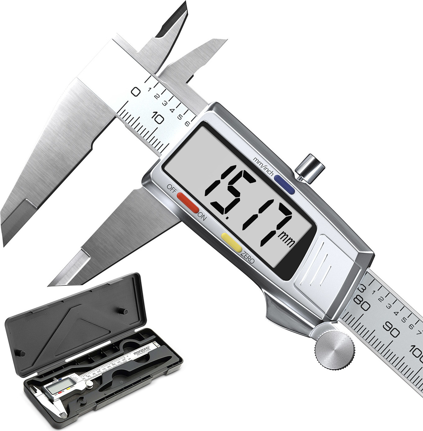 Digitální posuvné měřítko z kalené oceli s LCD displejem pro optimální výsledky měření. Díky otočnému kolečku lze posuvník ovládat plynule a digitální displej je snadno čitelný. Vybaven pevným pouzdrem pro bezpečné uložení.