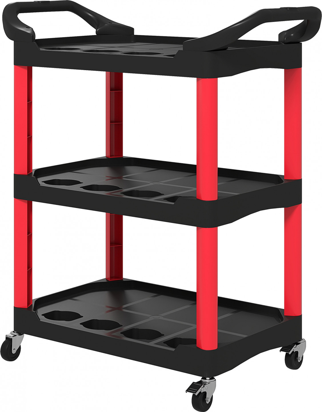 Dílenský vozík se 3 policemi s nosností 91 kg | černý + červený