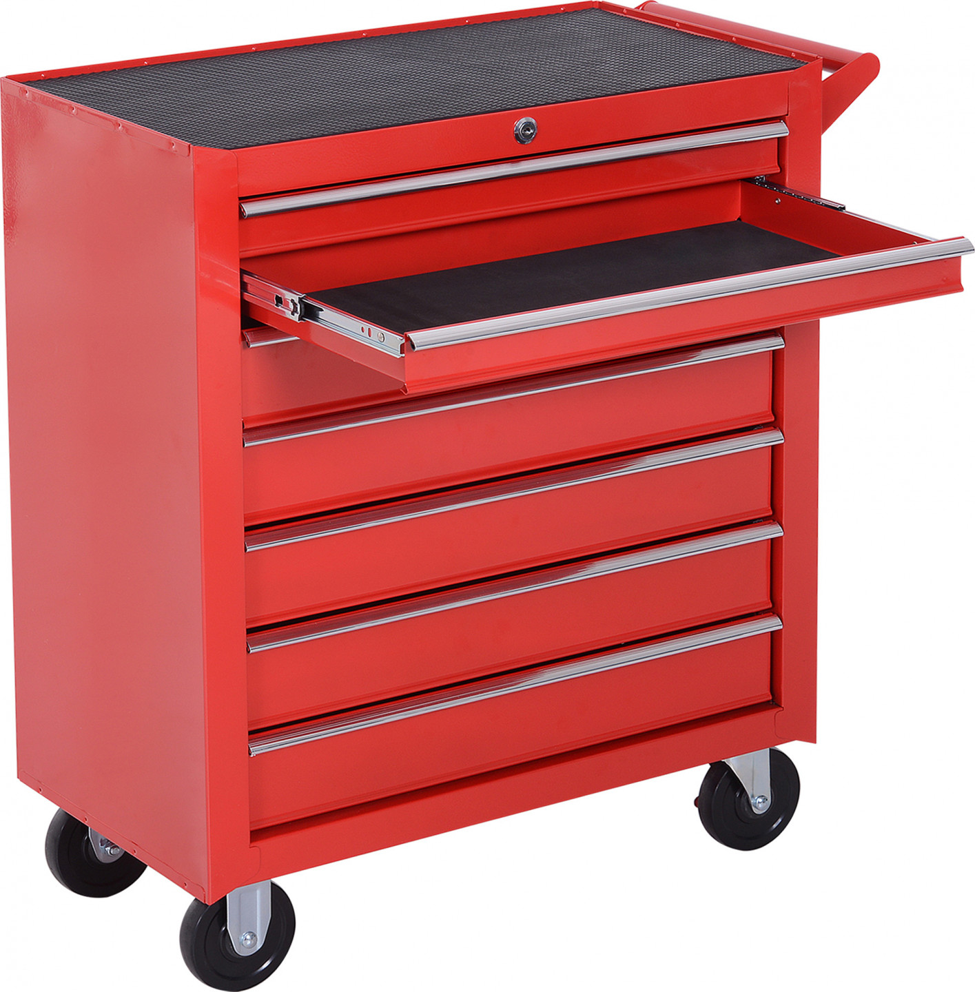 Objevte dokonalé řešení pro skladování nářadí s tímto vozíkem na nářadí. Vozík na nářadí je vybaven mnoha zásuvkami a policemi a nabízí velkorysý úložný prostor pro dílenské příslušenství a drobné díly - vše je vždy přehledně uspořádáno a snadno dostupné. Díky čtyřem hladce se pohybujícím kolečkům, z nichž dvě jsou opatřena brzdami, lze vozík na nářadí bez námahy přemístit, kamkoli potřebujete. Tato skříňka na nářadí je ideální do každé garáže nebo dílny, kde bude vše uspořádané a efektivní.