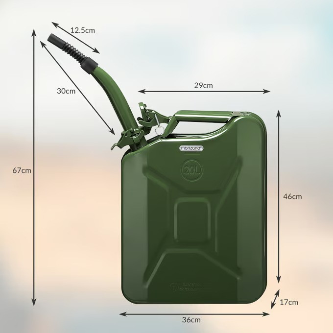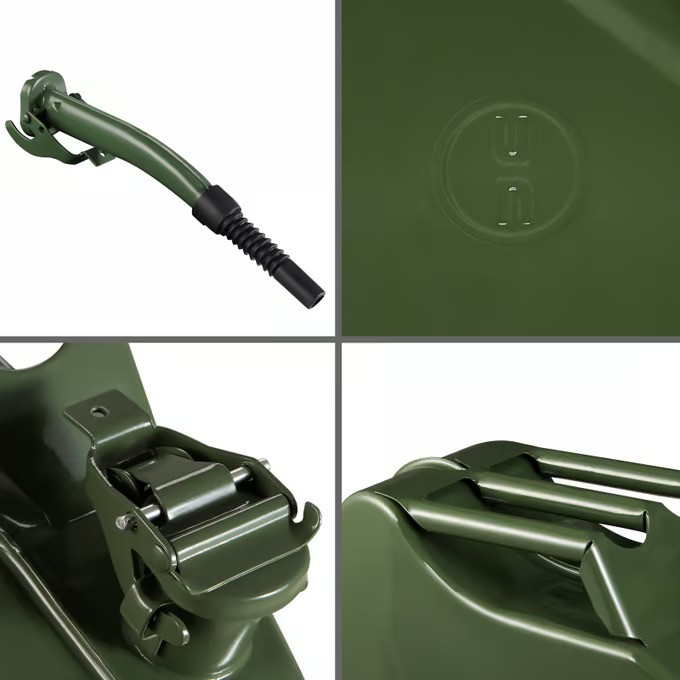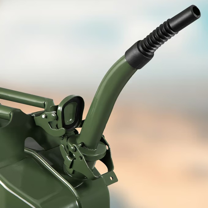 Naše kovové kanystry na benzín mají schválení OSN pro přepravu dle předpisů o nebezpečných věcech a jsou vhodné pro všechny druhy paliv (benzín, naftu, olej atd.). Ať už se jedná o přepravu, skladování nebo dávkování, kanystry nabízejí spolehlivé a cenově výhodné řešení. Kovové kanystry jsou vyrobeny z oceli válcované za studena, díky čemuž jsou velmi robustní a zabraňují deformaci během nalévání. Aby se zabránilo vnitřnímu korozi, jsou zevnitř opatřeny alkyd-amoniakální barvou odolnou vůči benzínu. Bezpečnostní klips připevněný k víku zajišťuje spolehlivé uzavření. Součástí sady je nalévací tryska , která umožňuje snadnější přečerpávání paliva.
