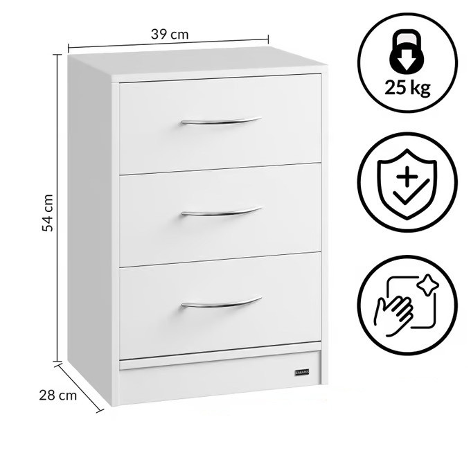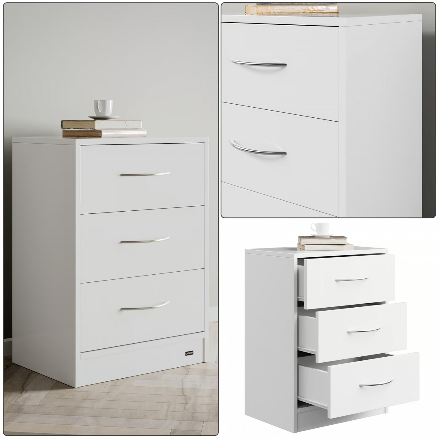 - 3 zásuvky s chromovanými úchyty