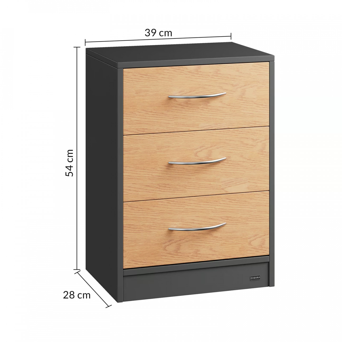 - 3 zásuvky s chromovanými úchyty
