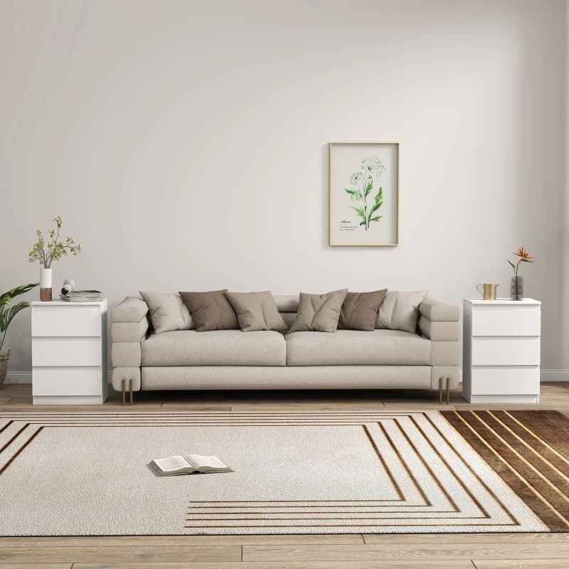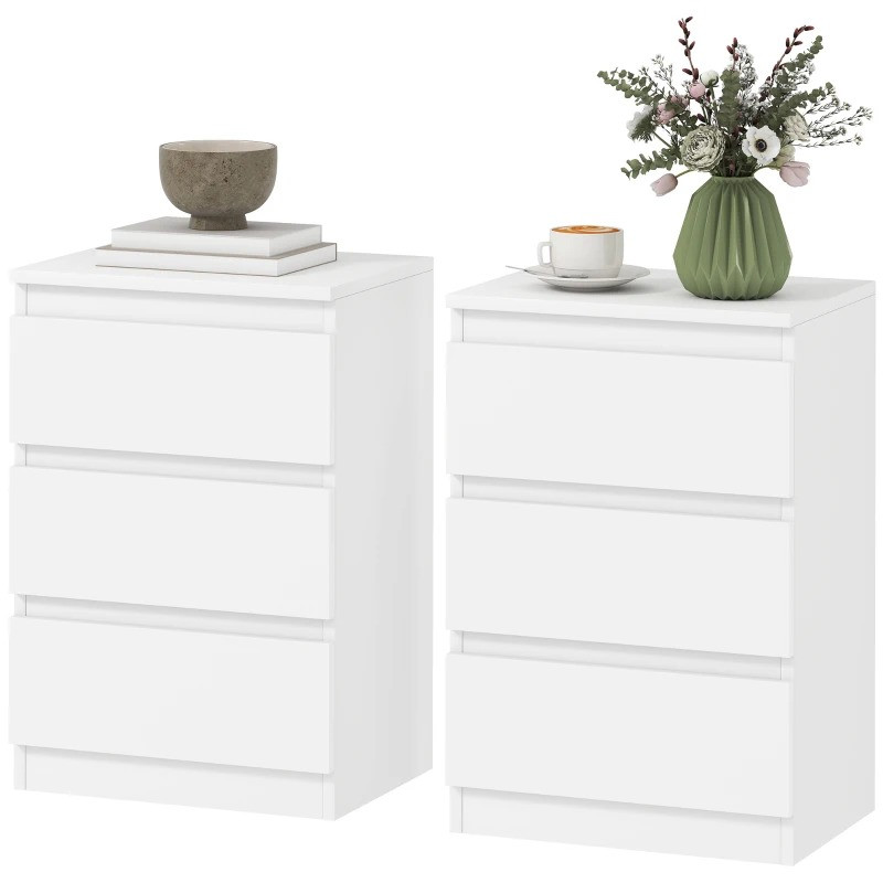 Oživte svou ložnici touto moderní sadou dvou nočních stolků. Každý noční stolek má tři hladce výsuvné zásuvky, do kterých uložíte své noční nezbytnosti na ploše pouhých 0,12 m². Bezúchytkové bílé provedení nočních stolků dodá každé místnosti čistý a klidný vzhled. Tyto funkční noční stolky vnesou do vaší domácnosti více organizace a stylu každý den.