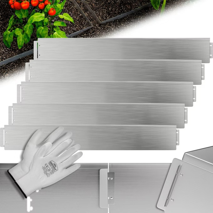 Sada obsahuje odpovídající zahradnické rukavice – ideální pro instalaci lemování záhonů a pro všechny ostatní zahradnické práce.