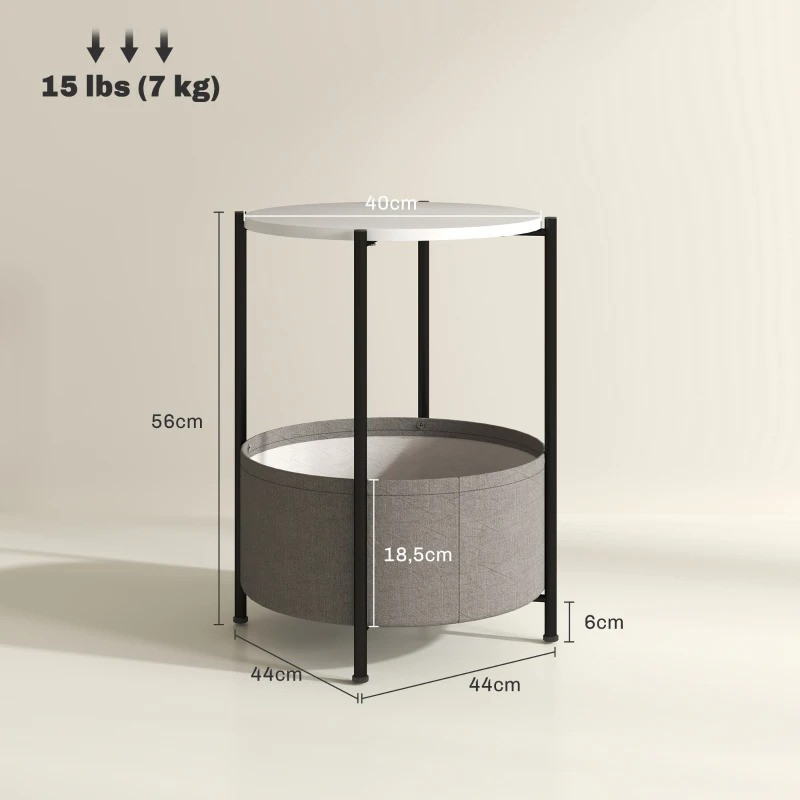 Konferenční stolek s látkovým košem, 44 x 44 x 56 cm | šedý + bílý