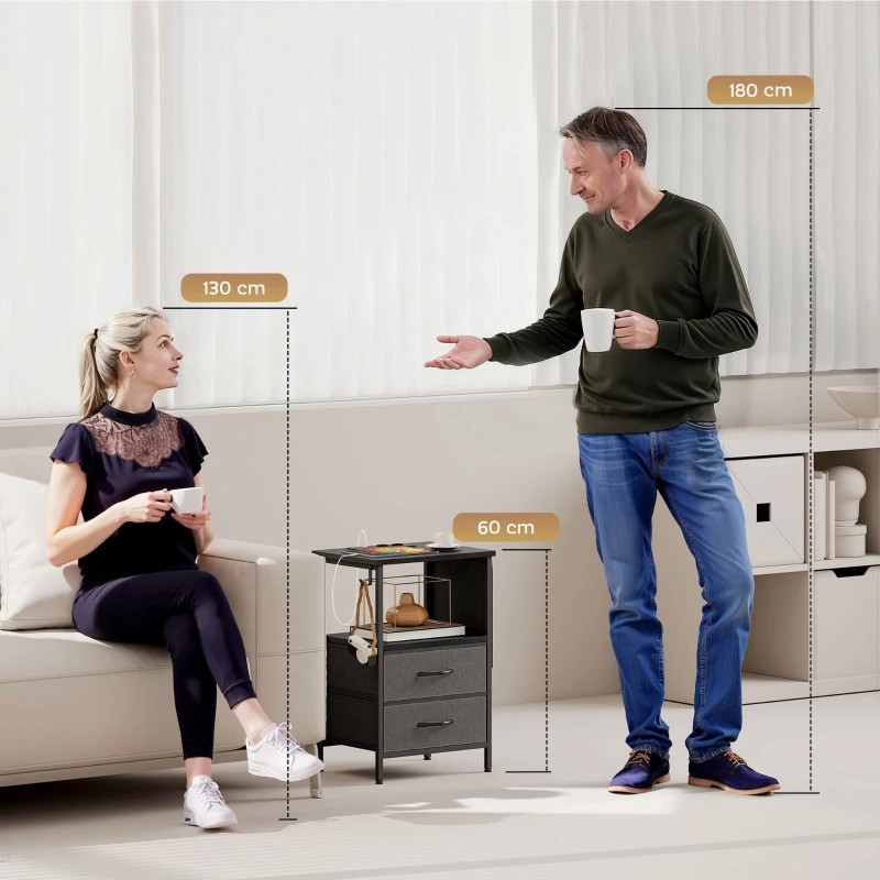 Zamotané kabely a chaos kazí klid a pohodu večerní rutiny a ztěžují skutečný odpočinek. Představte si, že vaše zařízení jsou přes noc prázdná a vše důležité se neuspořádaně povaluje kolem. Postranní stolek s úložným prostorem vám vrátí pořádek, a to díky integrovaným zásuvkám a USB portům, které vám zajistí neustálé připojení. Jeho pětidílný úložný systém, včetně zásuvek a užitečné boční kapsy, poskytuje vyhrazený prostor pro každou věc.