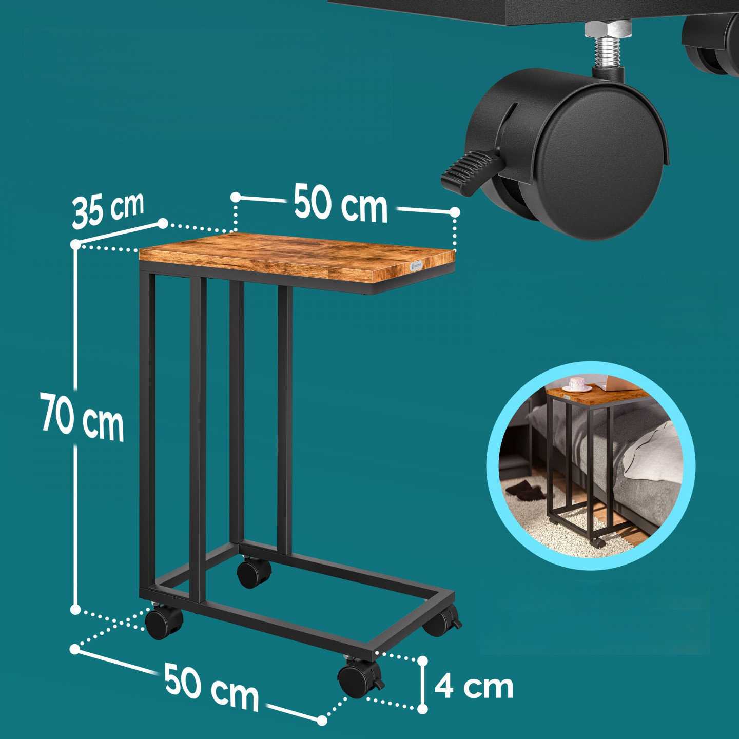 Odkládací stolek 50x35x65/70cm | černý