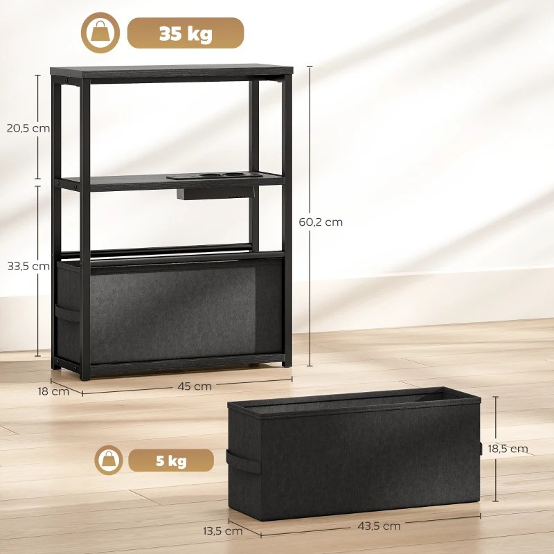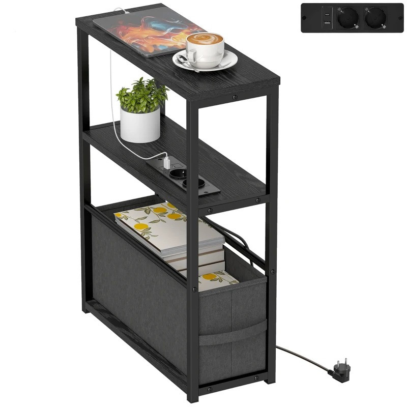 Odkládací stolek s napájecí lištou USB 45 x 18 x 60,2 cm | černý