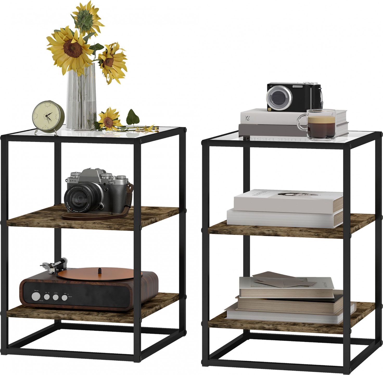 - Dvoudílná sada skleněných stolků nabízí všestranné možnosti.