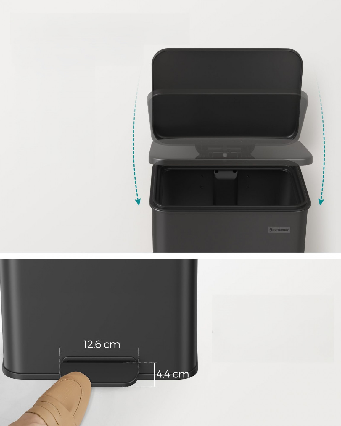 Váš odpadkový koš nemusí vypadat jako nemístně, s elegantní kouřově šedou barvou a jednoduchou siluetou bude tento 40L odpadkový koš ve vaší kuchyni poutavý. Vše, co musíte udělat, je sešlápnout pedál, abyste otevřeli víko.