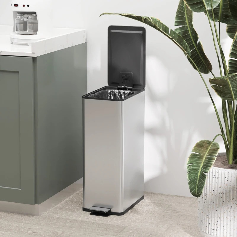 Udržujte svou kuchyň čistou a bez zápachu s odpadkovým košem! Mechanismus soft-close a uzávěr odolný proti zápachu zajišťují svěžest uvnitř. Tento robustní a stylový koš je vyroben z nerezové oceli odolné proti otiskům prstů a přináší do vaší kuchyně organizaci, styl a kvalitu. Praktický nášlapný pedál a vyjímatelný vnitřní koš usnadňují jeho používání a čištění. Dokonalá kombinace funkčnosti a moderního designu pro vaši domácnost.