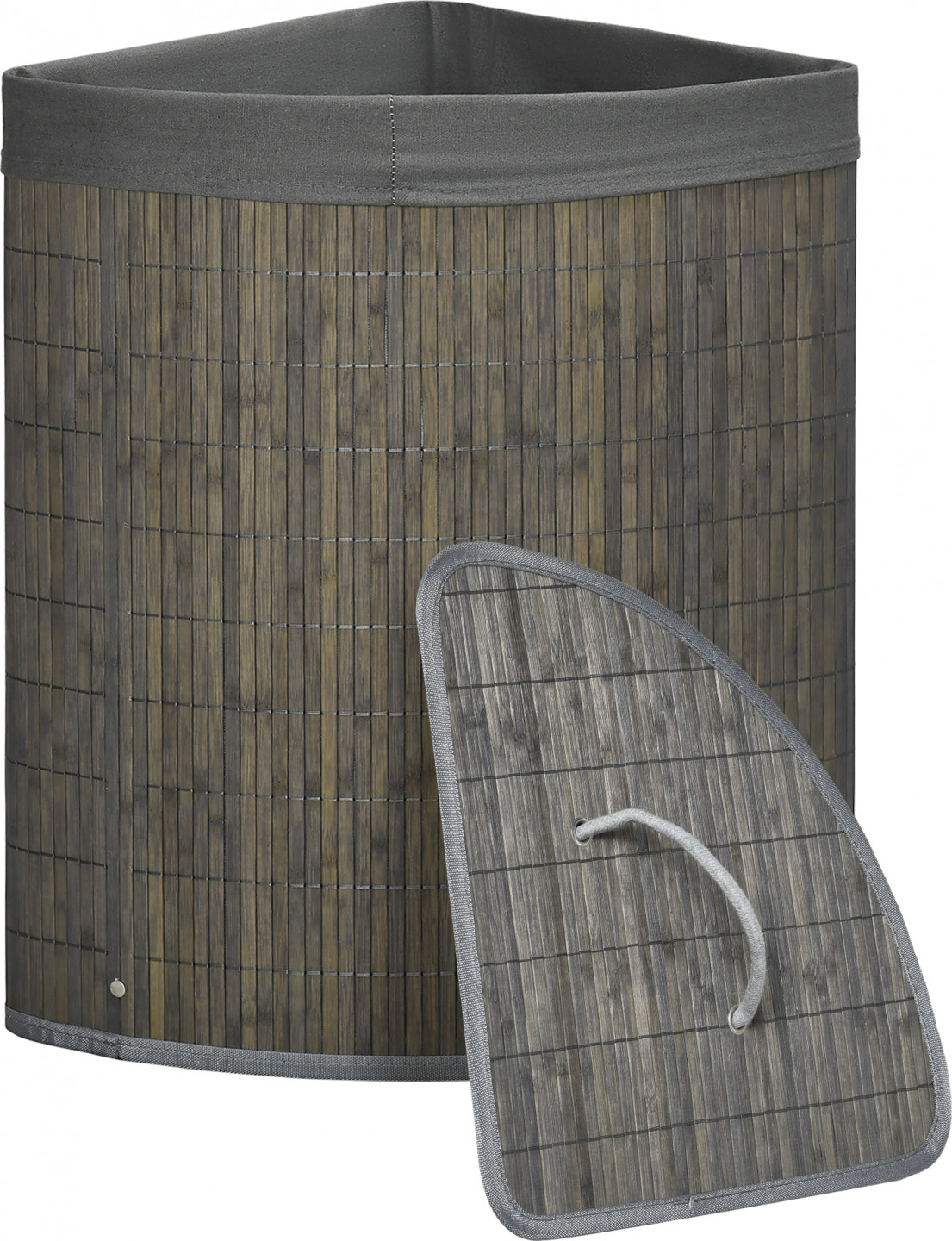 Rohový bambusový koš na prádlo | šedý