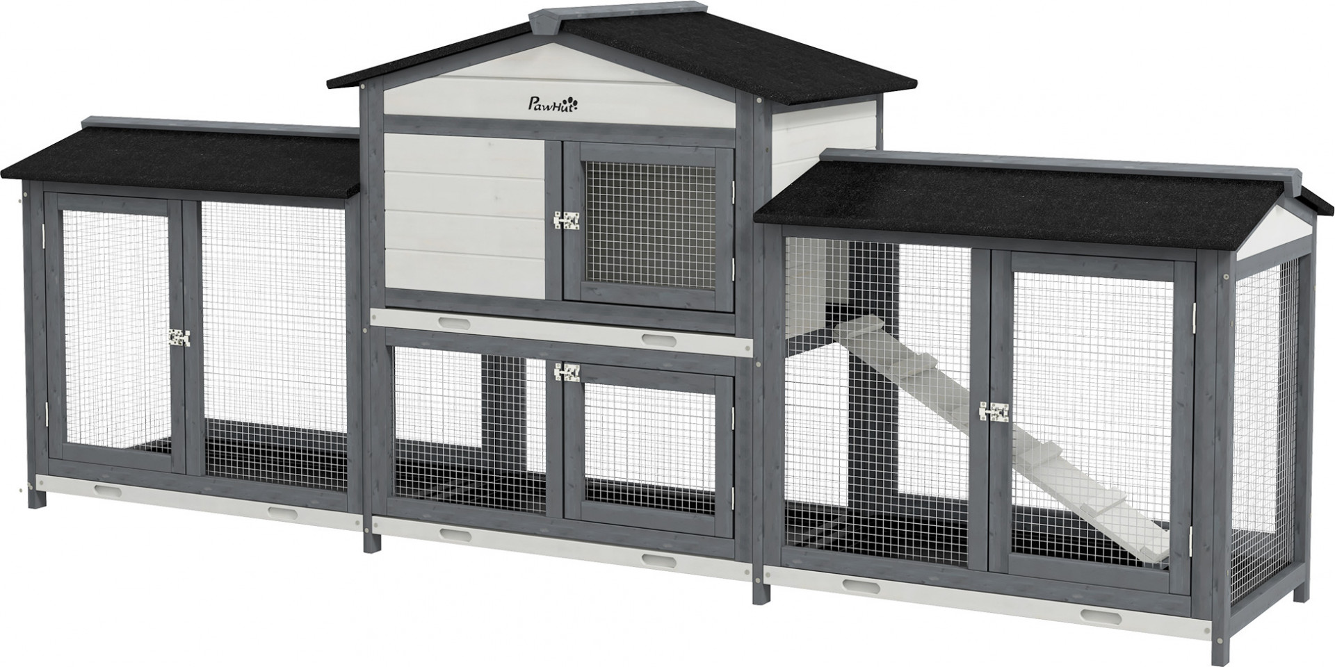 Dřevěná králíkárna 230 x 53 x 93,5 cm | světle šedá