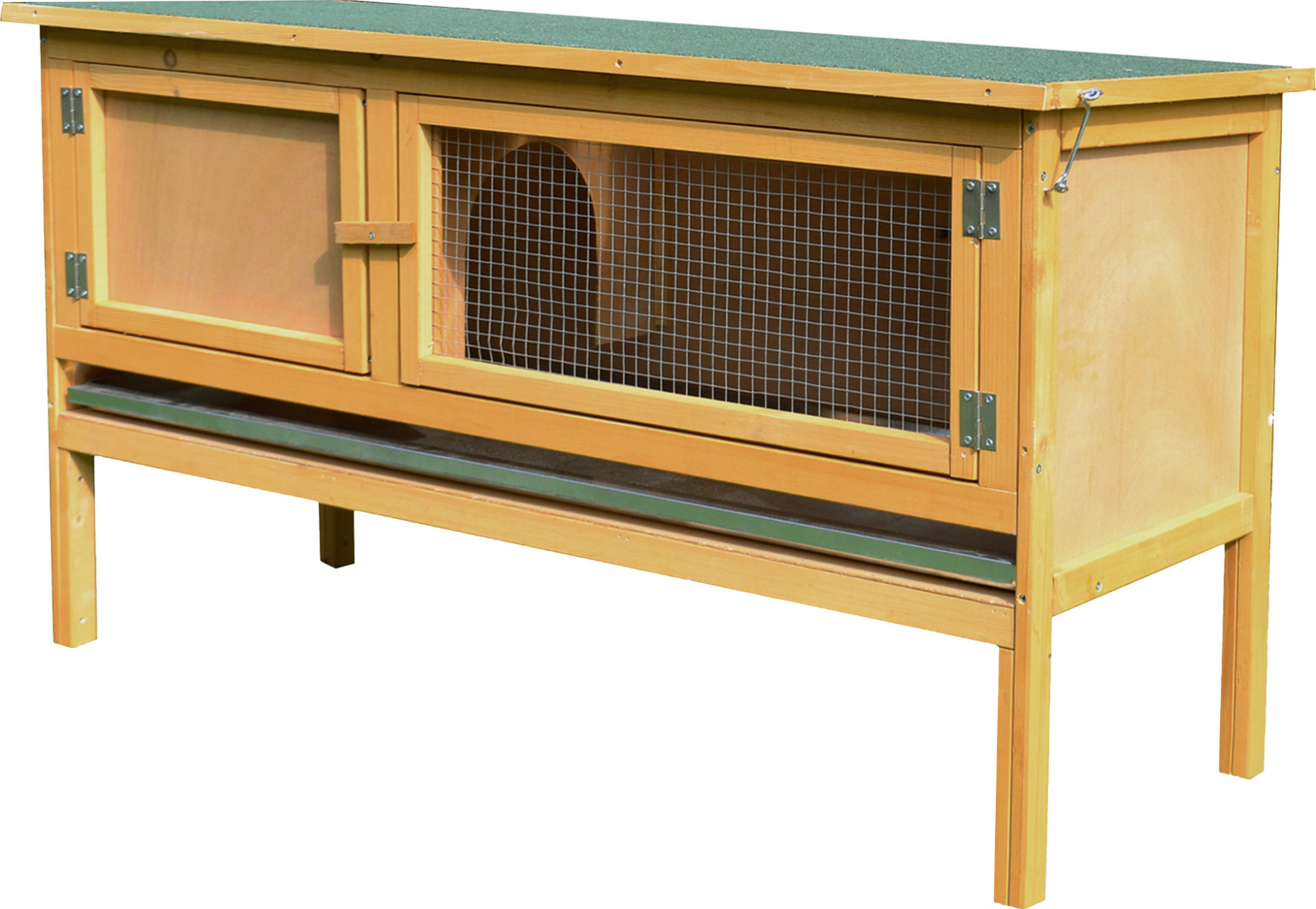 Nabídněte svým králíkům králíkárnu z voděodolného jedlového dřeva se střechou z voděodolného asfaltu. Drátěná dvířka zajišťují dobré větrání. Je rozdělena na dvě části a umožňuje králíkům vybrat si mezi vnitřním a venkovním prostorem.