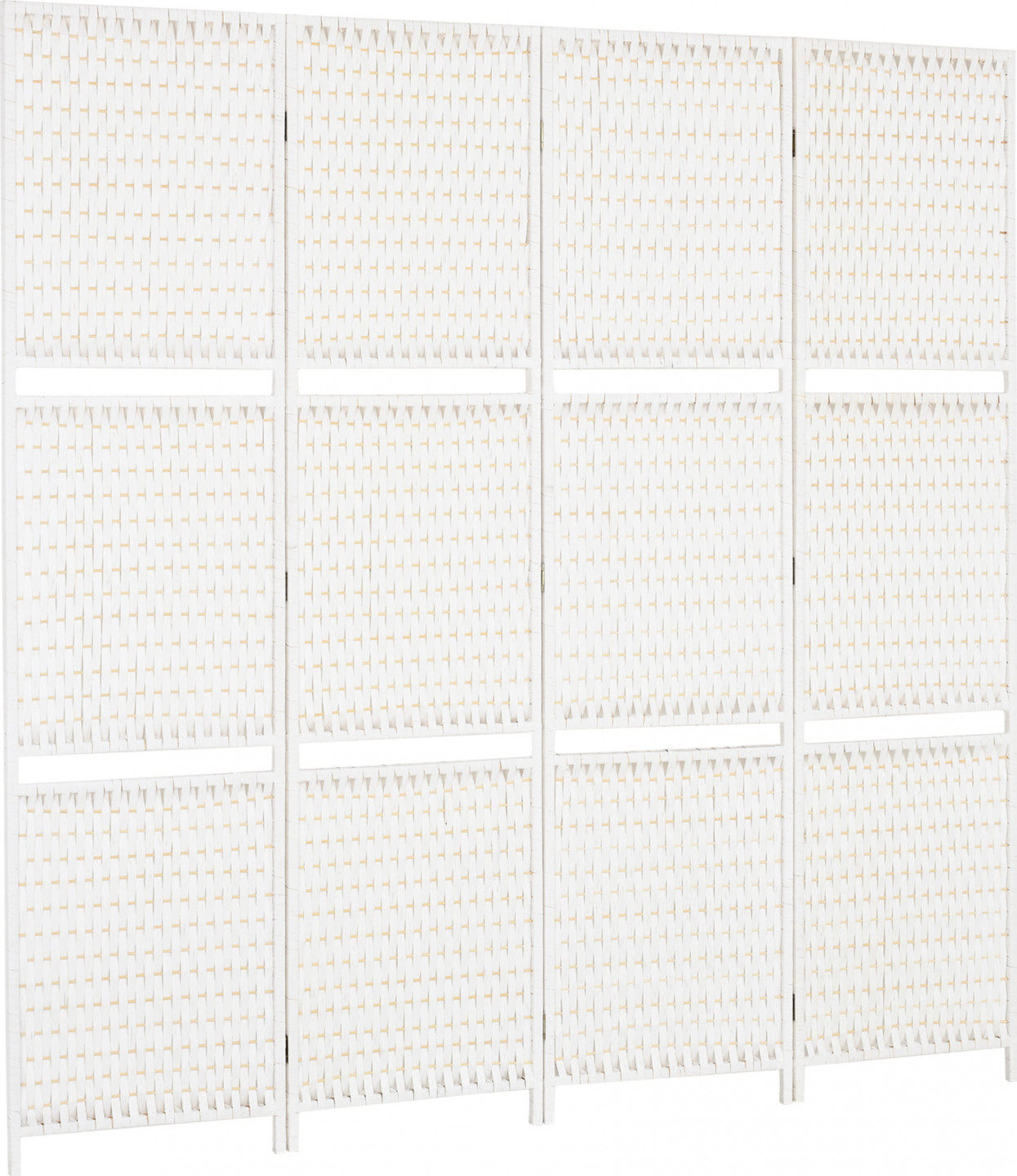 Podlehněte kouzlu tohoto krásného interiérového paravánu ze 4 panelů vyrobeného z borovicového dřeva, bambusu a tkaného bílého slaměného papíru. Jeho tkaný vzhled nabízí harmonický a originální vzhled, který rozzáří váš domov.
