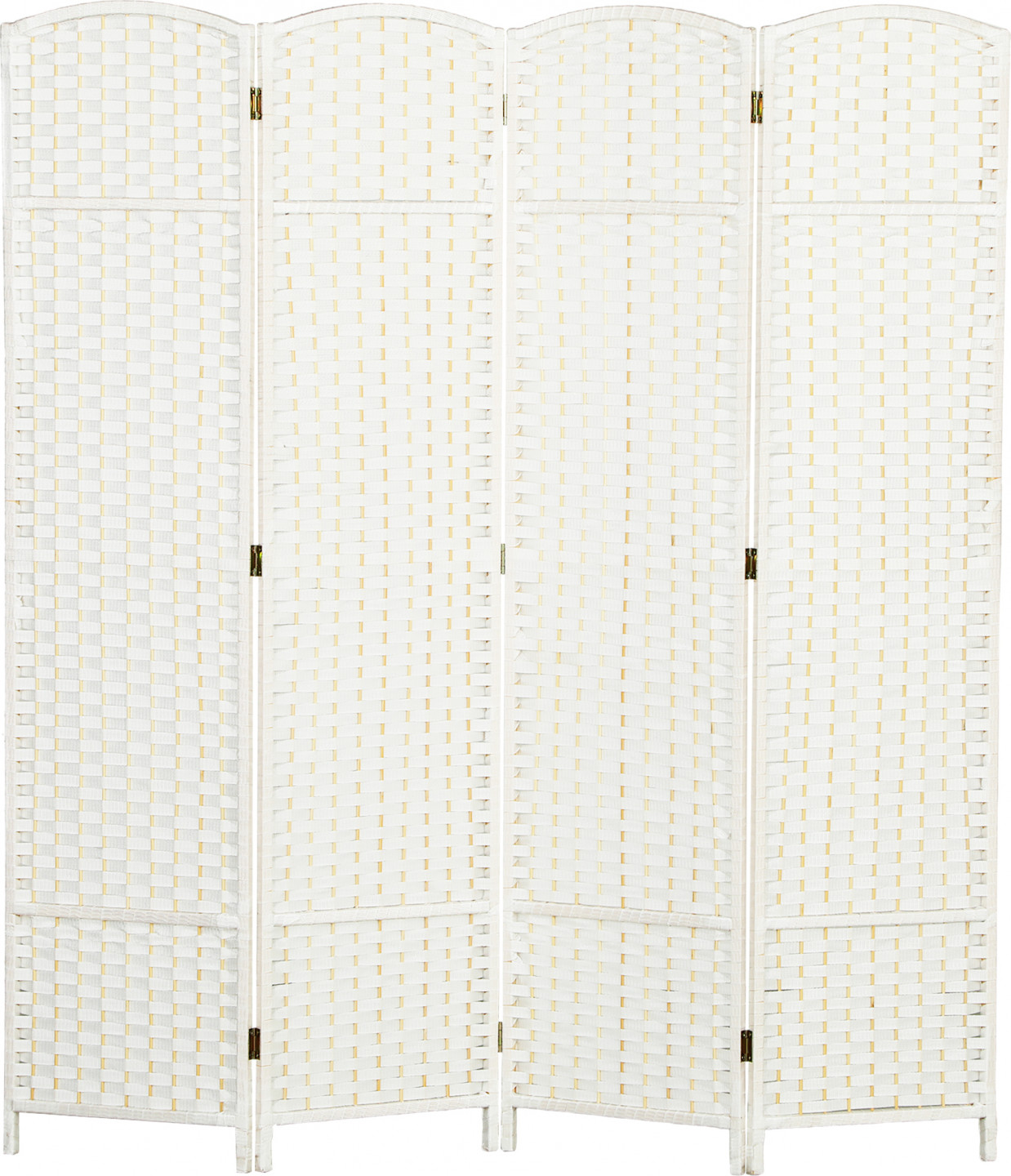 Přestavte si místnosti pomocí rozdělovače místností. Polypropylenový materiál zajišťuje větší soukromí a odolnost než běžná papírová vlákna. Mobilní dělící stěna kombinuje styl a funkčnost díky elegantní čtyřdílné skládací konstrukci a 9 kovovým pantům. Zakřivený rám z borovicového dřeva a polypropylenová tkanina dodávají této skládací zástěně elegantní nádech.