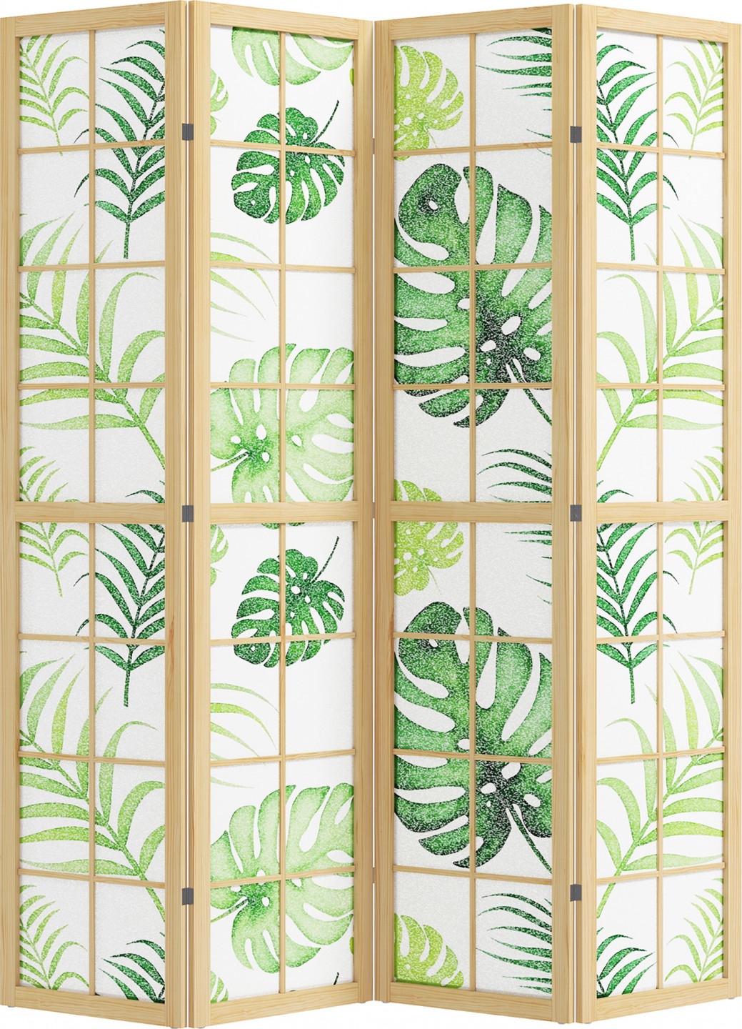 Paraván 4-dílný 160 x 170 cm | přírodní + zelený