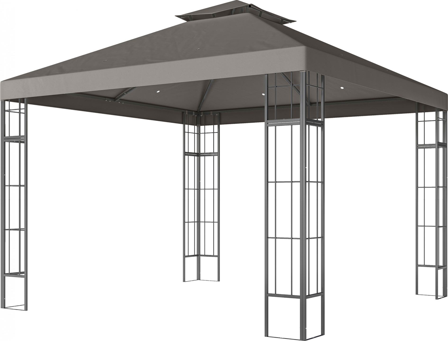 Robustní kovové sloupy zahradního altánu odolného proti povětrnostním vlivům s práškovým nástřikem poskytují vynikající ochranu před povětrnostními vlivy a elegantní dvouúrovňová střecha altánu zlepšuje cirkulaci vzduchu. Plastem potažená střecha altánu chrání 97 % UV záření a poskytuje příjemně chladivou ochranu před sluncem v teplých letních dnech.