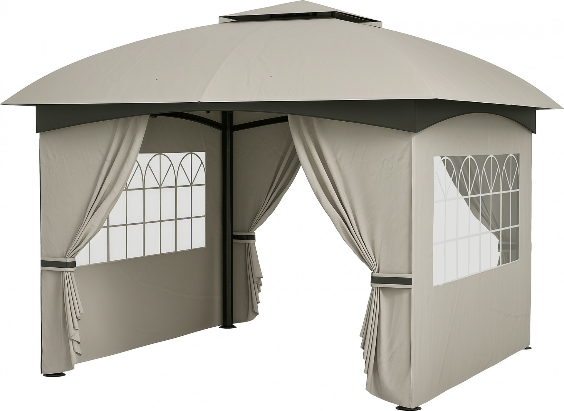Zažijte kouzlo přírody pod elegantním altánem. Díky střeše odolné proti roztržení, která poskytuje ochranu před sluncem, a stylovým průhledným obloukovým oknům je tento altán nejen atrakcí pro oči, ale také velmi praktický. Robustní kovový rám s práškovým nástřikem a inovativní dvouúrovňová konstrukce střechy zajišťují optimální cirkulaci vzduchu a chrání vás před povětrnostními vlivy - ideální na terasy, zahrady a další venkovní prostory.