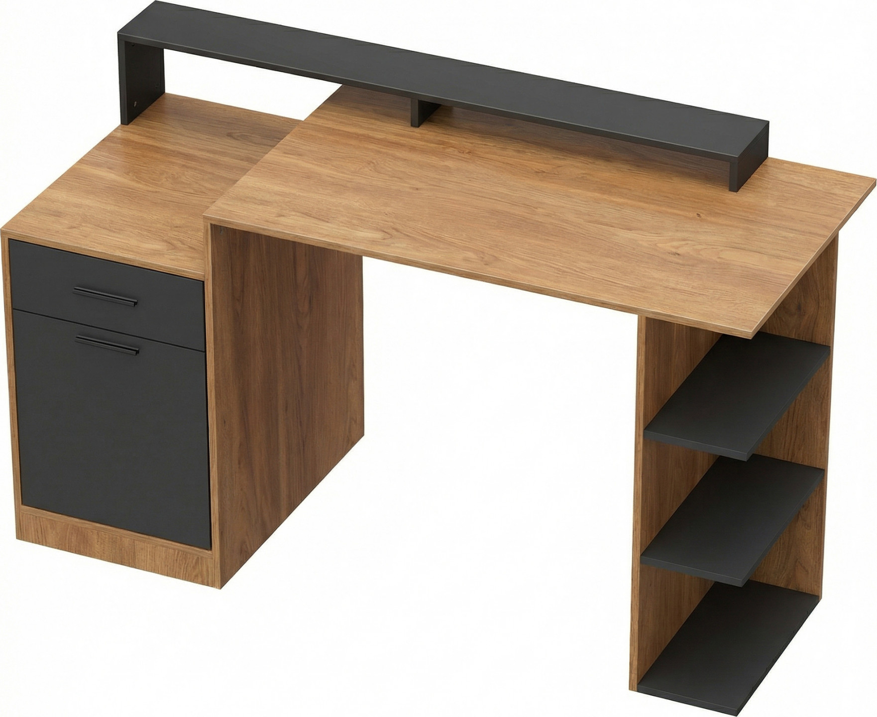 • Moderní dvoubarevný design počítačového stolu v dubové a černé barvě vylepší interiér každé místnosti