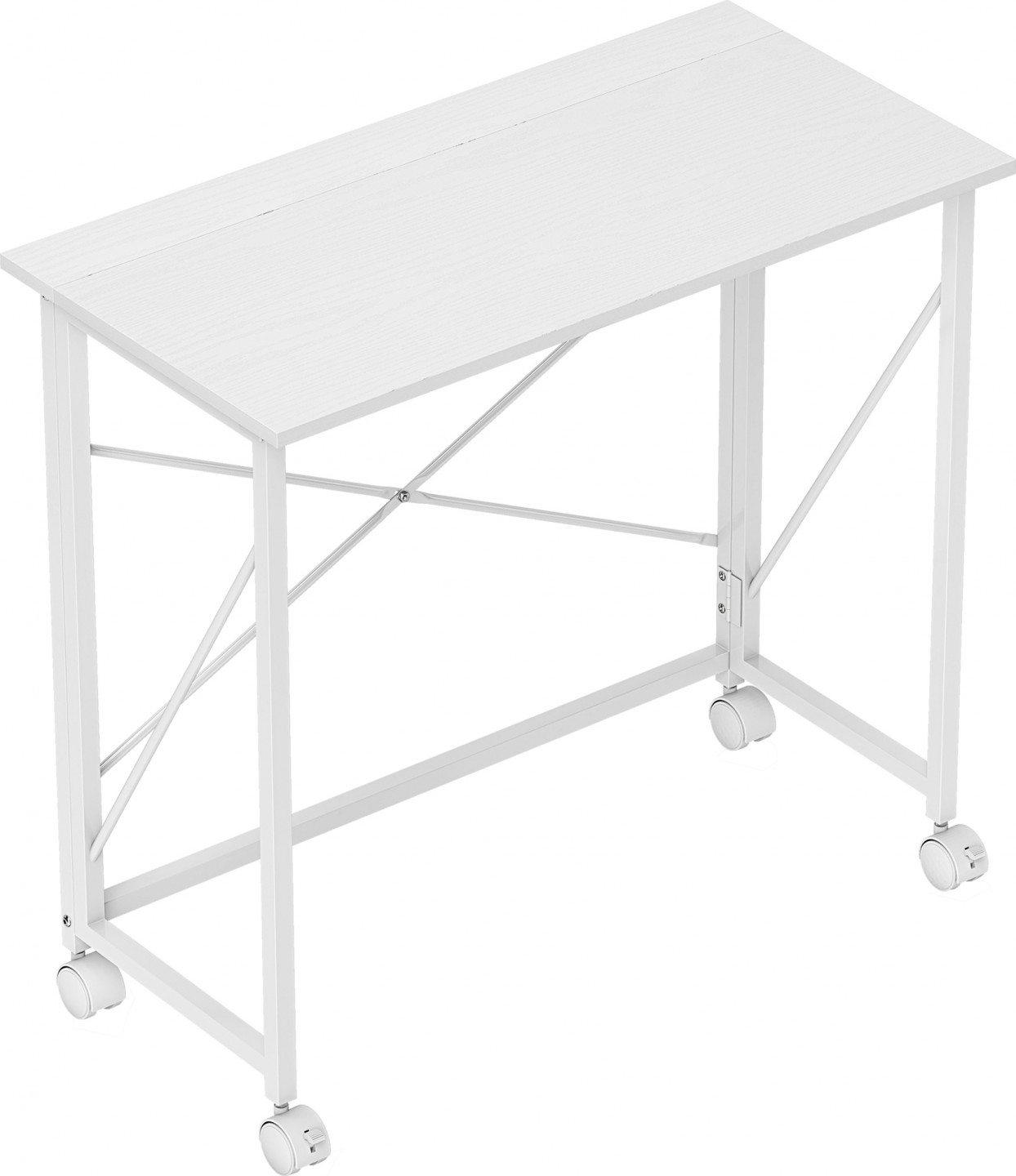 Objevte skládací psací stůl: je kompaktní, lze jej uložit za dveře nebo pod nábytek a šetří místo. Díky čtyřem kolečkům (dvě s brzdou) je ideální jako domácí kancelář, studentský stůl nebo kompaktní počítačový stůl.