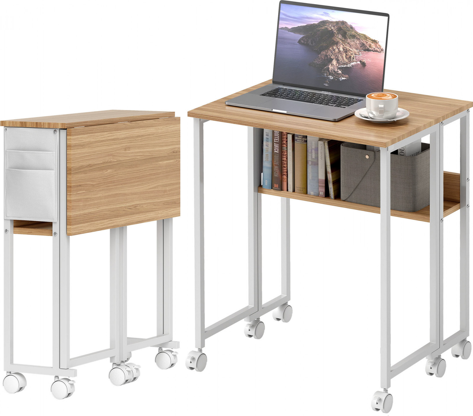 Využijte svůj prostor na maximum s malým počítačovým stolem. Tento prostorově úsporný stolek lze přeměnit z 50 cm hlubokého psacího stolu na štíhlý odkládací stolek o šířce 21 cm. Udělejte si pořádek díky otevřené poličce a praktické boční kapse. Díky šesti kolečkům otočným o 360°, z nichž čtyři jsou uzamykatelná, lze stolek snadno kamkoli přemístit. Ideální do malých kanceláří a obytných prostor.