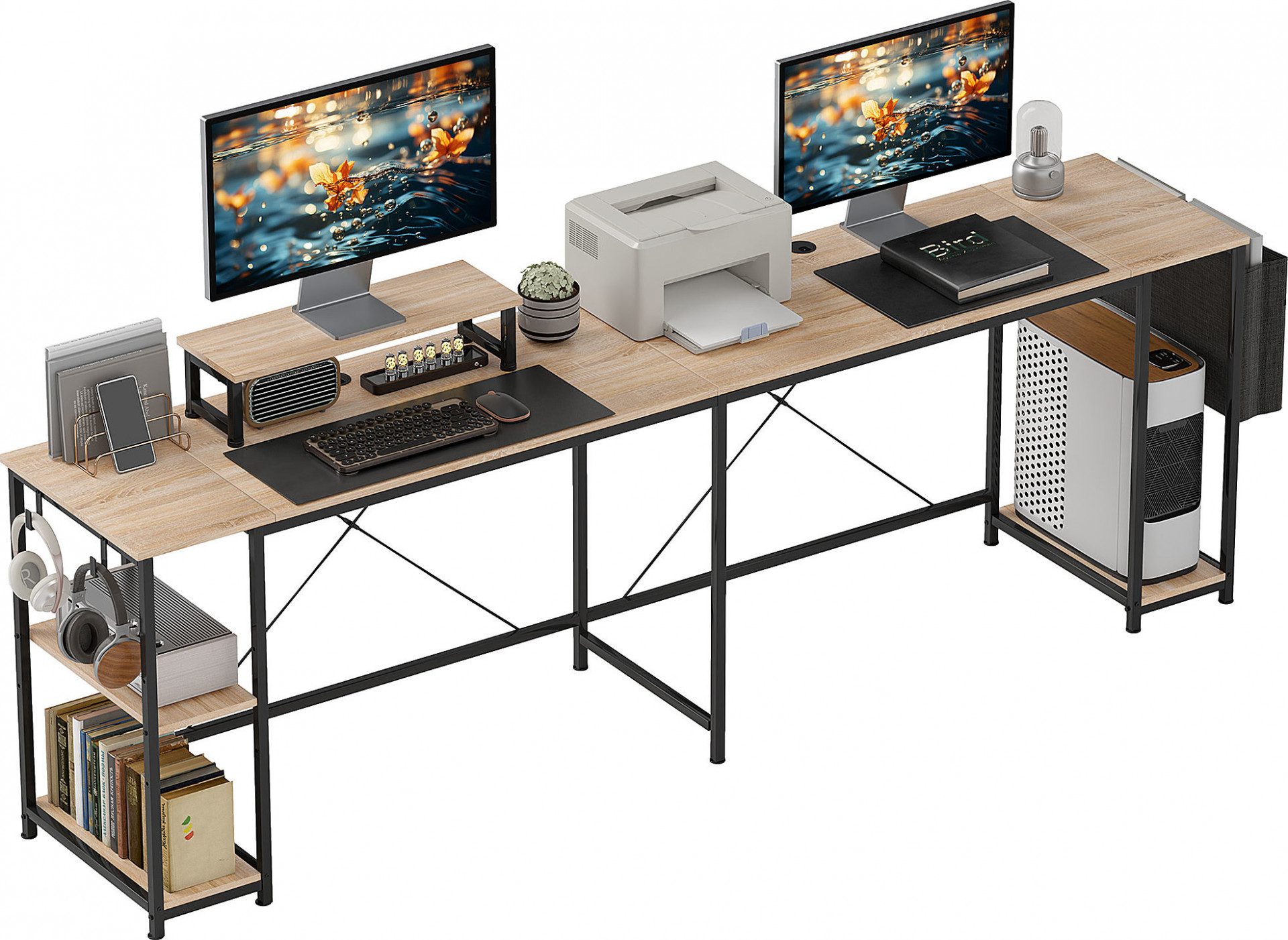 Optimalizujte svůj domov s rohovým psacím stolem, který lze modulárně použít jako stůl ve tvaru L nebo jako prodloužený stůl pro dvě osoby. Součástí je ergonomický stojan na monitor a úložné police pod sedákem. Ideální do každého pracovního nebo studijního koutu.