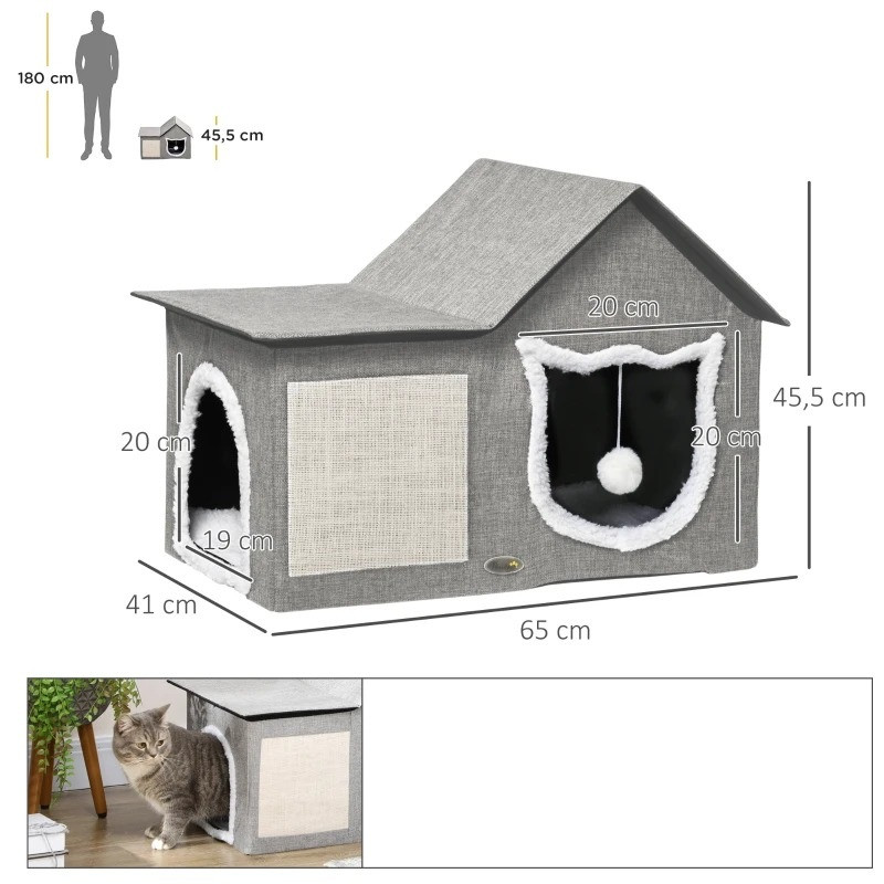 Poskytněte svému domácímu mazlíčkovi vlastní obytný prostor s tímto domkem pro kočky. Moderní design doplní váš stávající interiér a lze jej použít v obývacích pokojích, chodbách, ložnicích nebo jakýchkoli jiných místnostech v domě. Tento krytý úkryt je ideálním místem pro kočičky, kde se mohou schoulit, zdřímnout si a hrát si. Měkký, omyvatelný polštářek poskytuje dokonalé pohodlí. Kočky si tento domeček pro kočky, který kombinuje design a funkčnost, jistě zamilují.