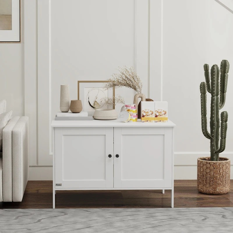Tato multifunkční skrytá vanička na stelivo nejenže skryje nevzhledný odpadkový koš, ale také poskytne plochu pro přehledné uložení potřeb. Díky vyvýšené konstrukci může váš automatický vysavač jednoduše projet pod ní. Vytvořte si s touto skříňkou pro kočky uklizený obytný prostor!