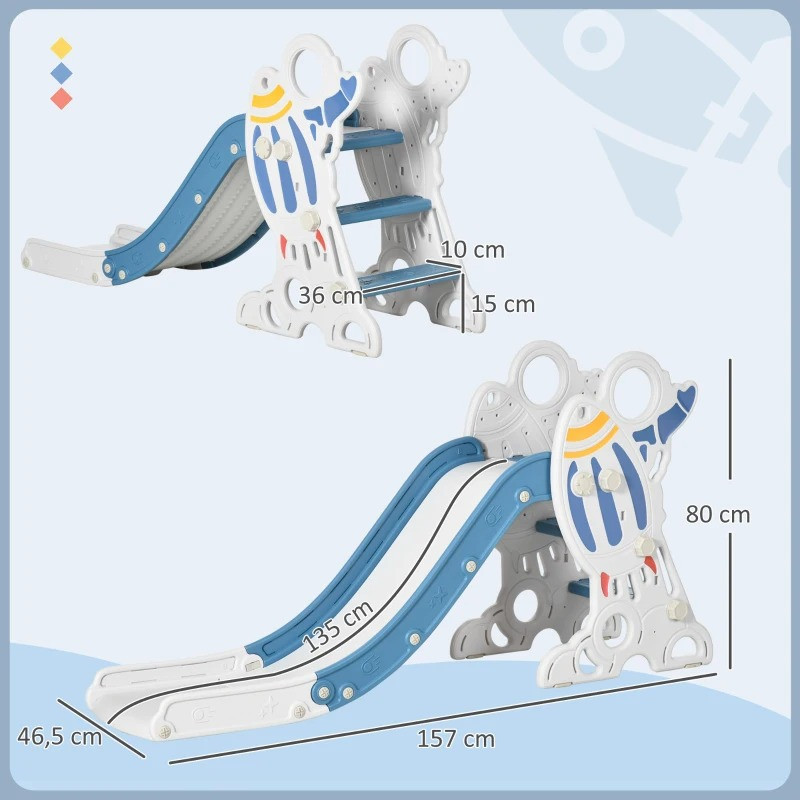 Zjednodušte si dohled nad batolaty pomocí skluzavky: protiskluzové schůdky, jemná skluzavka s kolejnicemi, zaoblené hrany pro menší rizika. Motiv rakety pro představivost malých dobrodruhů. Bezpečná hra pro neobyčejné dny.
