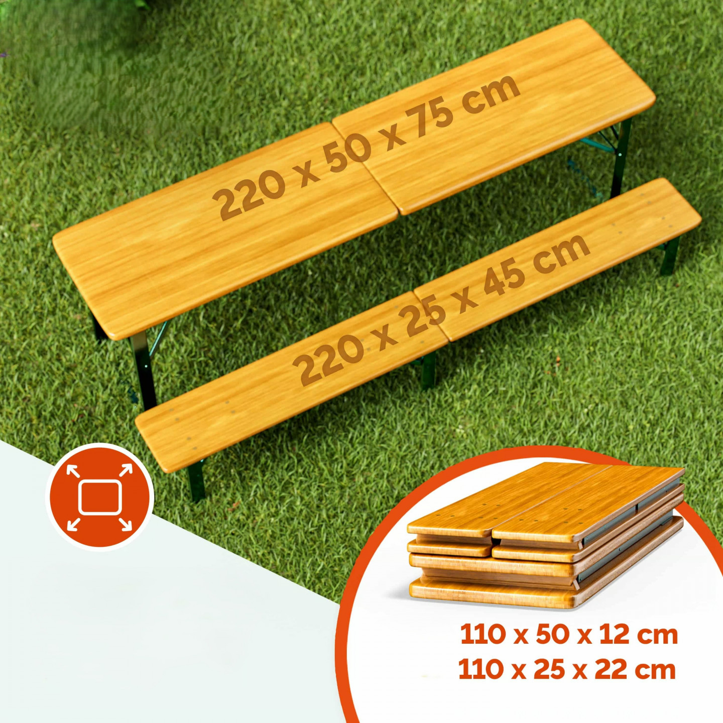 • Rozměry po složení na lavici : 110 x 25 x 10 cm