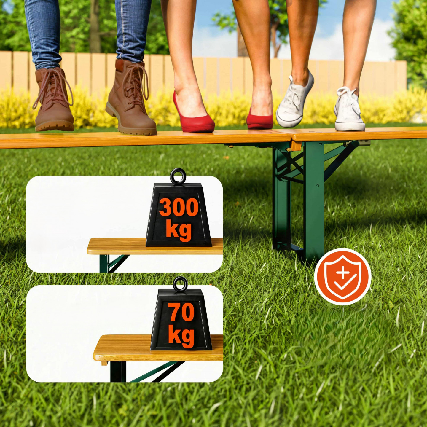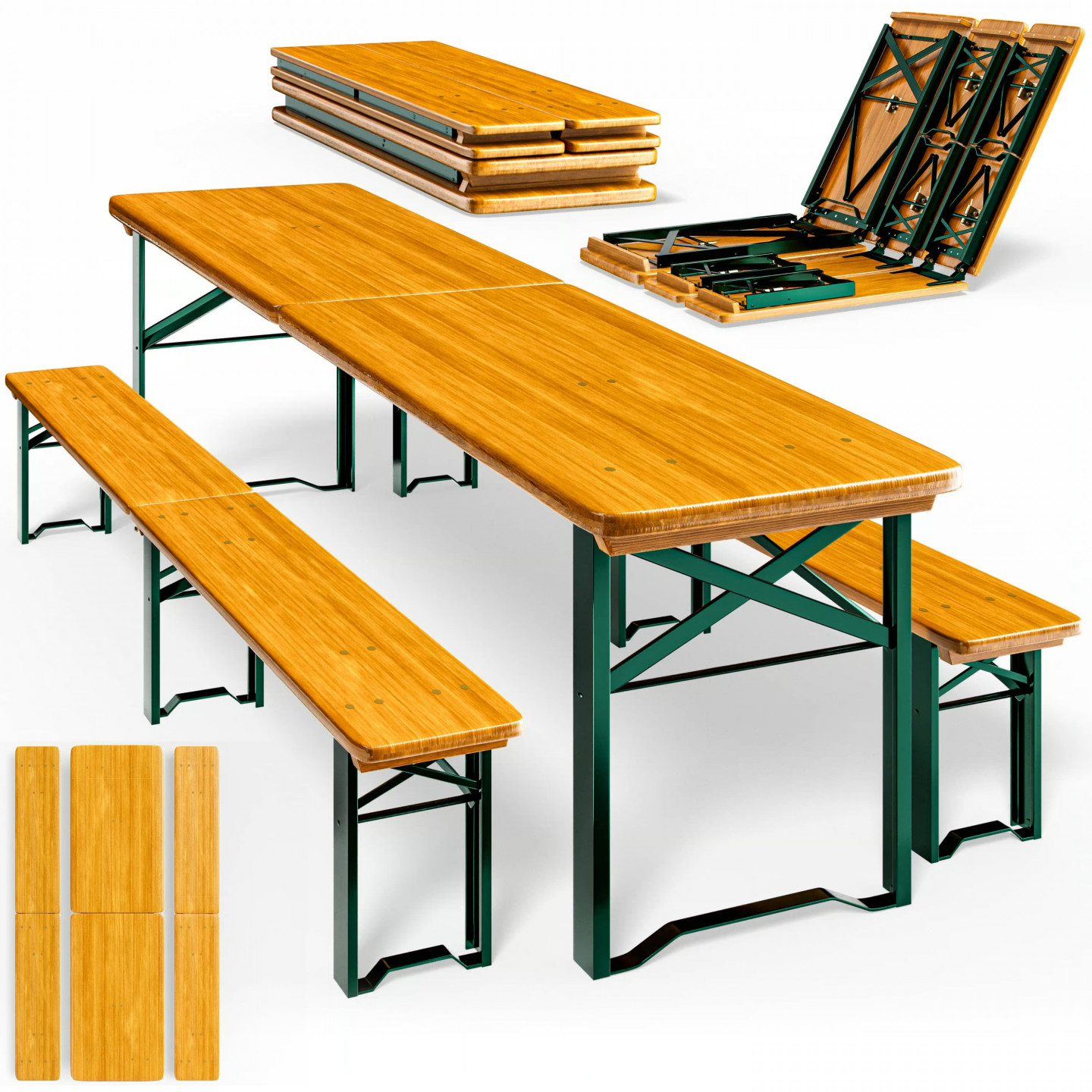 Tento 3dílný skládací pivní set je ideálním řešením pro všechny, kdo si chtějí užít příjemné chvíle s přáteli na zahradě, terase nebo při různých venkovních akcích. Set se skládá ze stolu a dvou laviček, které jsou praktické, pohodlné a snadno přenosné. Díky skládací konstrukci je set velmi kompaktní, snadno se skladuje a přepravuje, což ho činí skvélé pro festivaly, grilování, pikniky nebo zahradní párty.