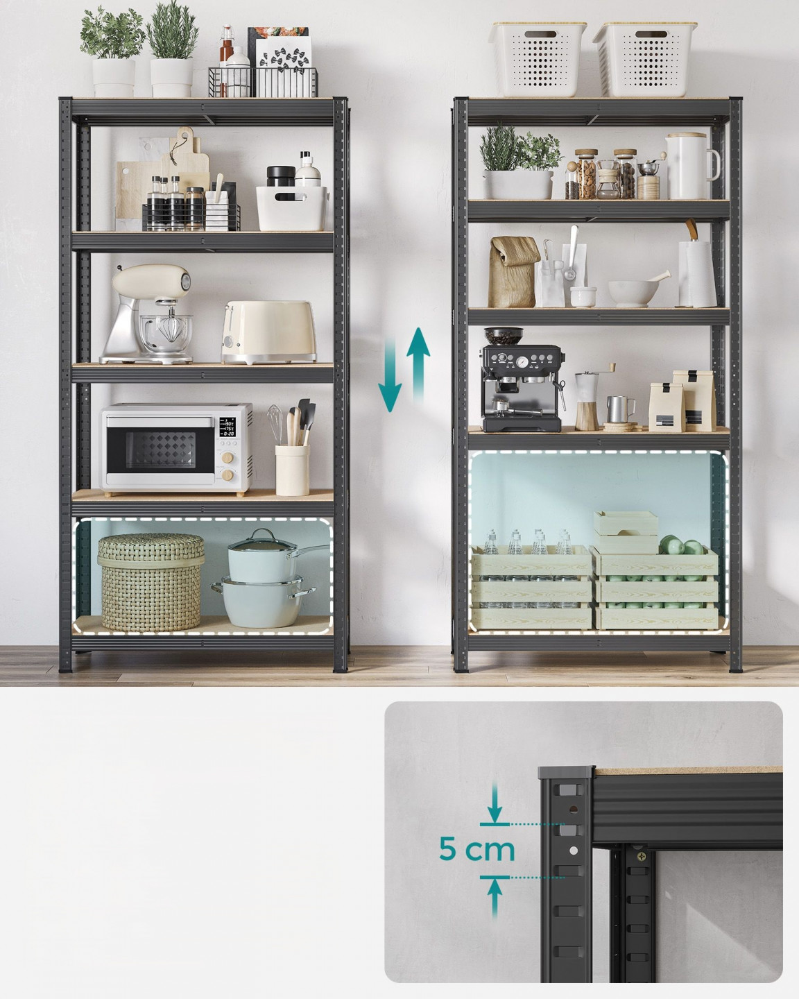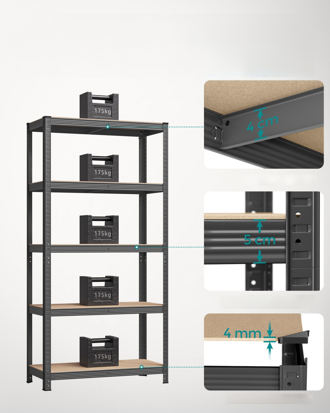 Nastavitelný pětipatrový regál 40 x 90 x 180 cm | šedý