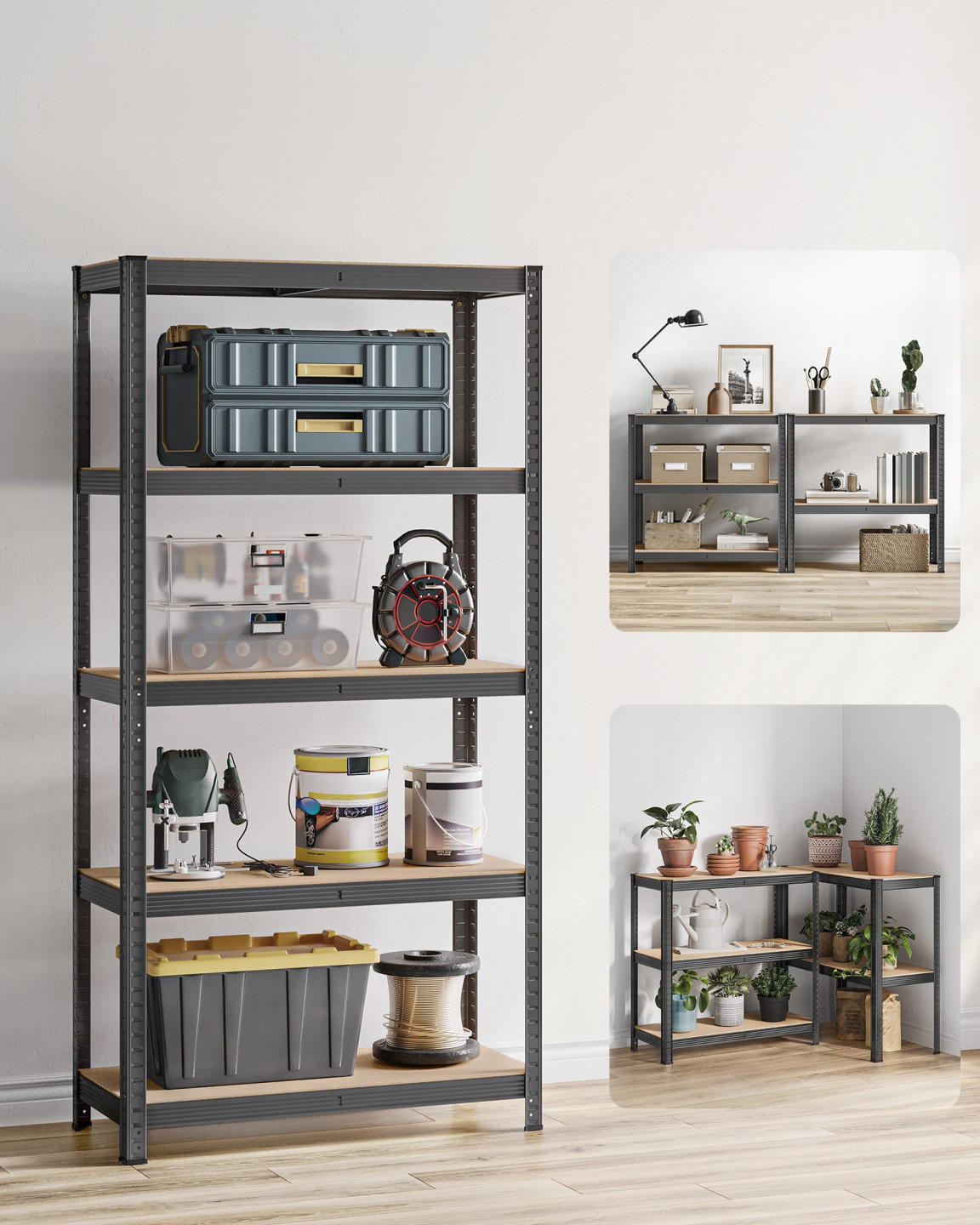 Šedý rám v kombinaci s policemi, tento policový regál, se dobře hodí k vašemu dalšímu nábytku. Poličky se shora dolů rozšiřují a nabízejí spoustu prostoru pro kreativitu a zároveň plně využívají prostor, ideální pro uložení jakýchkoli věcí, které chcete sbírat a vystavovat.